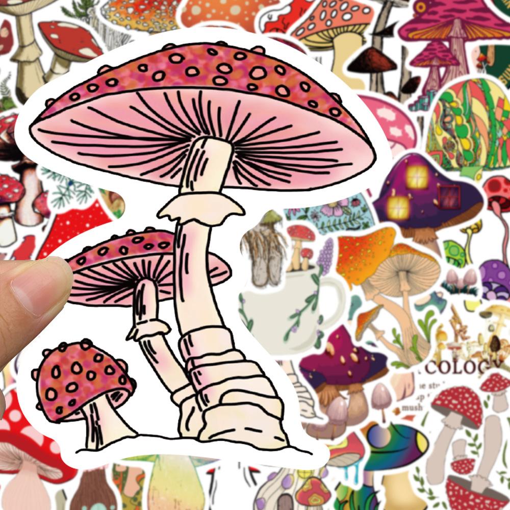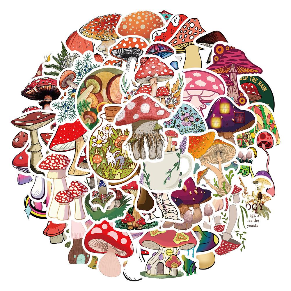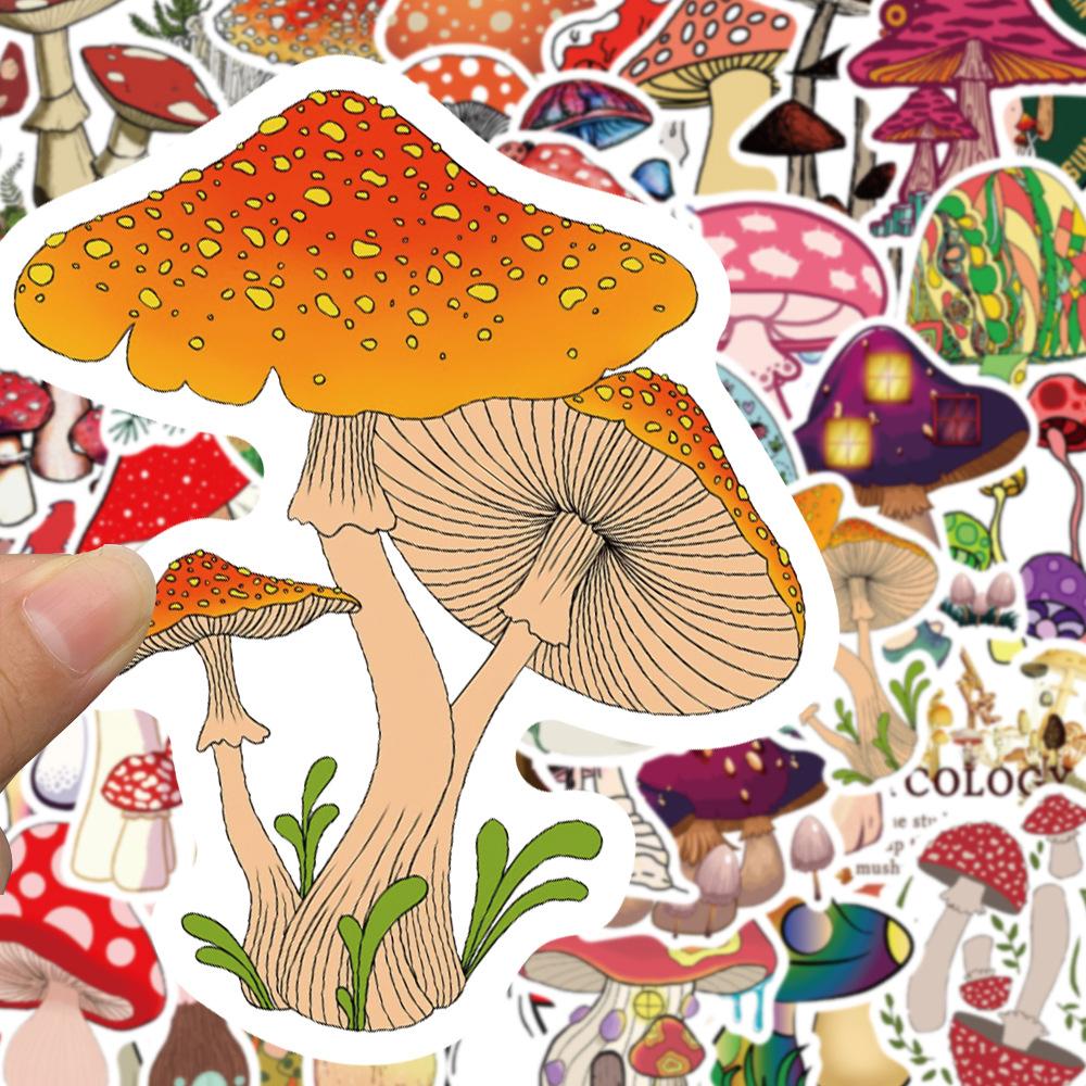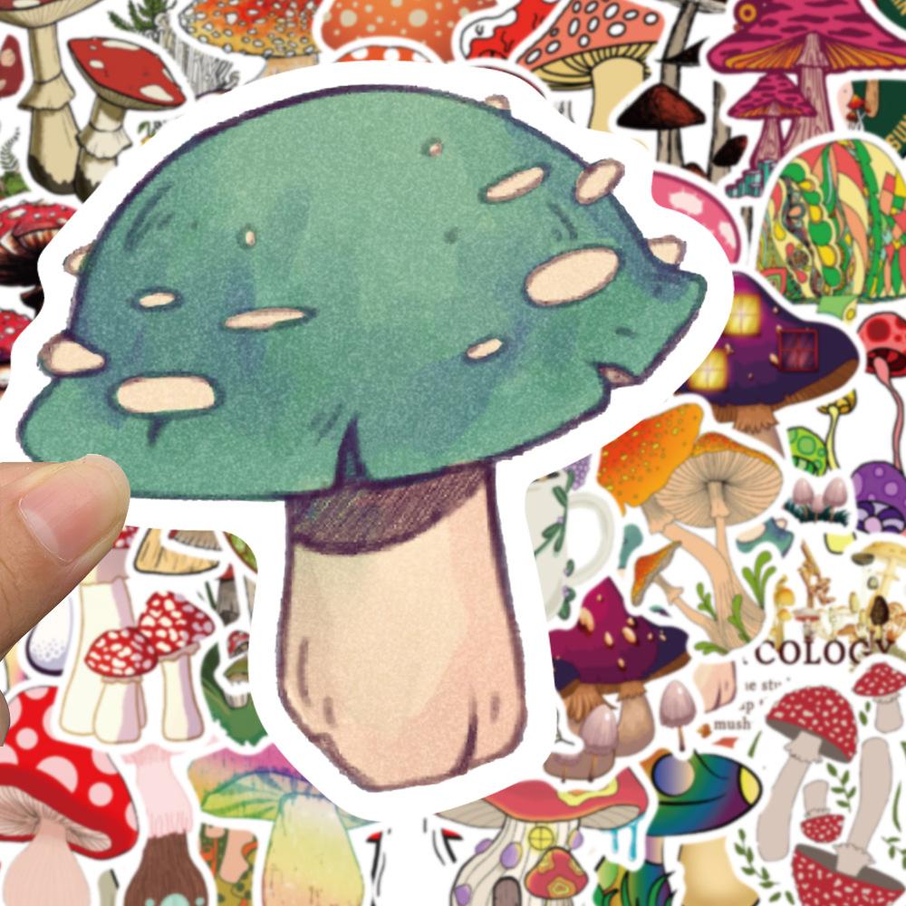 50 pegatinas de hongos de dibujos animados para cuaderno, equipaje, motocicleta, maleta con ruedas, lote de pegatinas decorativas impermeables