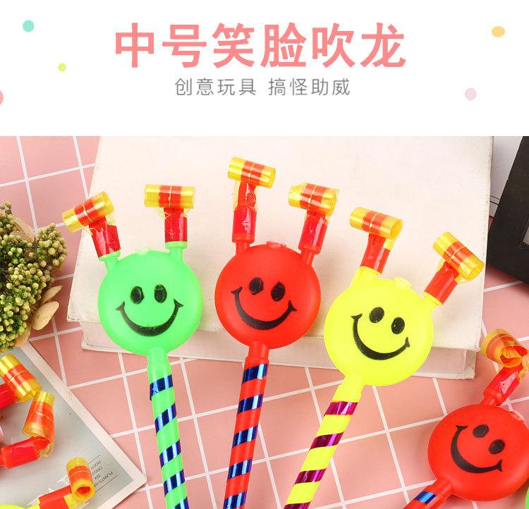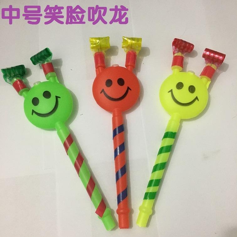 Recuerdos de la infancia, juguete clásico, gran cara sonriente, dragón soplador, juguete con sonido de trompeta