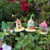 Nuevo conjunto de casa de flores transfronteriza con enchufe para jardín al aire libre, adornos artesanales en miniatura de resina, decoración de paisaje en maceta