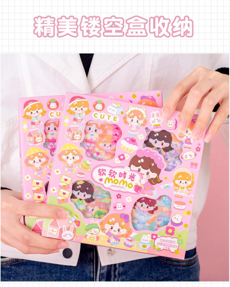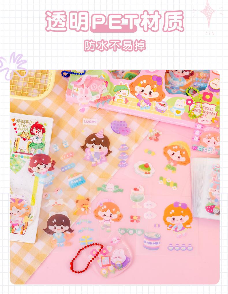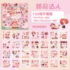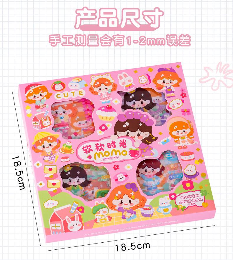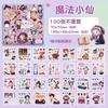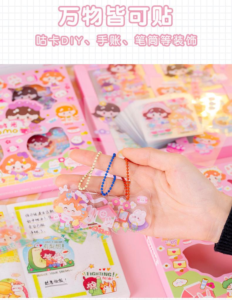 Pegatinas de cuenta de mano, 100 pegatinas de PET de dibujos animados no repetibles en caja de 7 cm, linda chica, material de decoración de tarjetas DIY