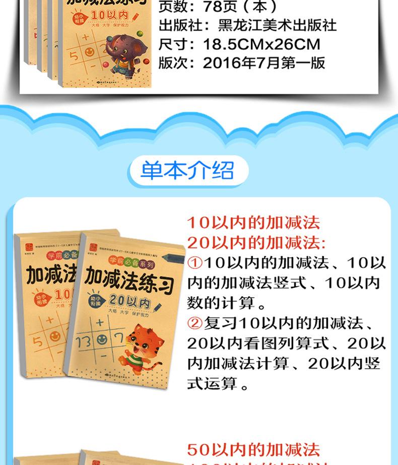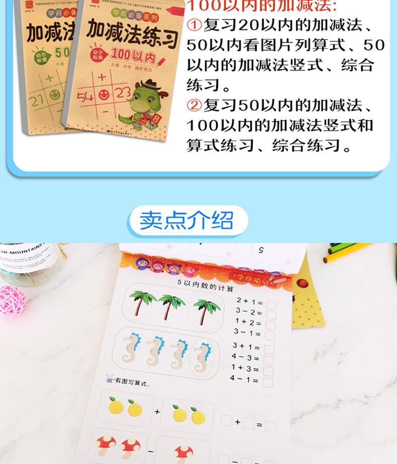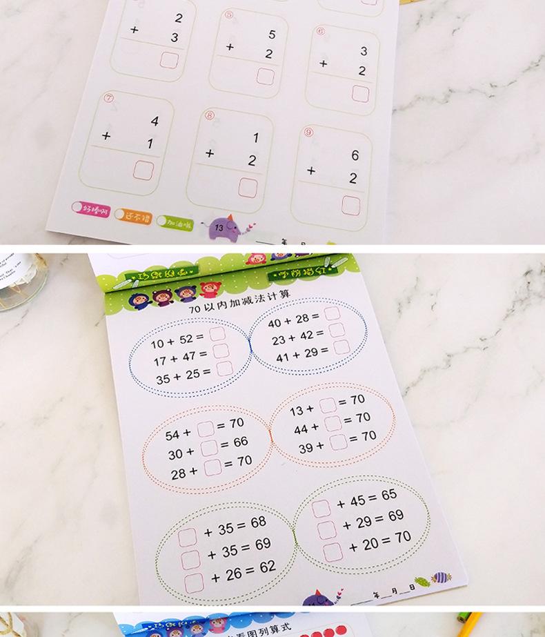 La serie esencial de ejercicios de suma y resta para preescolar se practica todos los días en el formato 10/20/50/100.