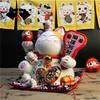 Descripción del producto: Los gatos de la suerte suelen estar hechos de cerámica, generalmente blancos, con una mano levantada sobre la cabeza, haciendo un gesto para llamar a la gente. Generalmente, un gato de la suerte levanta su mano izquierda para atraer la buena fortuna; levanta su mano derecha para atraer la riqueza; levanta ambas manos al mismo tiempo, lo que significa que la "riqueza" y la "felicidad" se unen. Además, la campana dorada que cuelga del pecho del gato de la suerte también significa buena suerte, riqueza, buena fortuna y destino. Los gatos de la suerte de diferentes colores representan los diferentes deseos de sus dueños, expresando el eterno deseo humano de felicidad, satisfacción y buena suerte.Esperanza