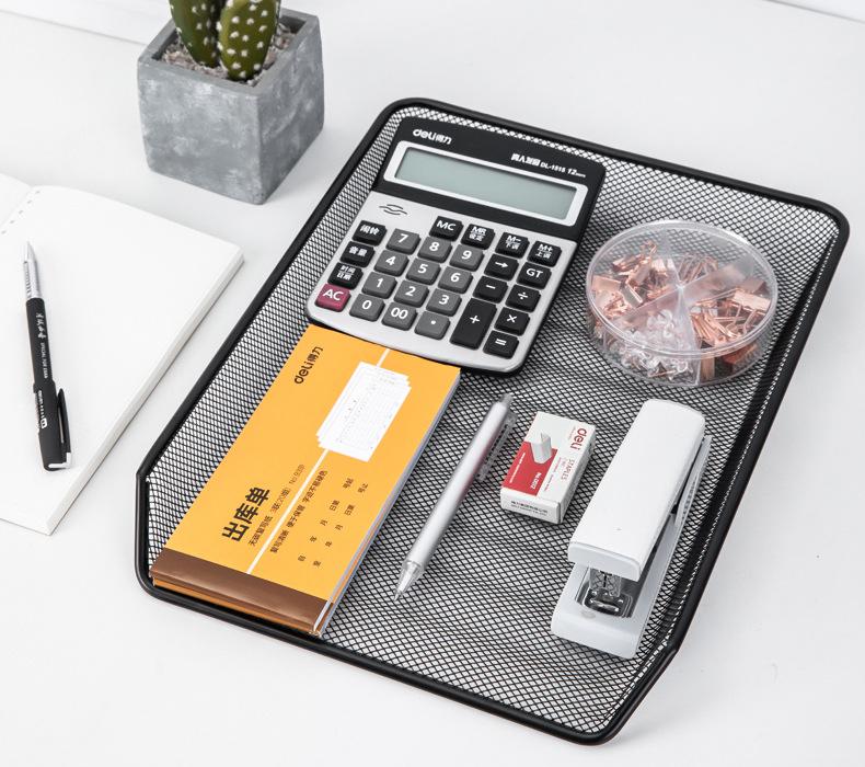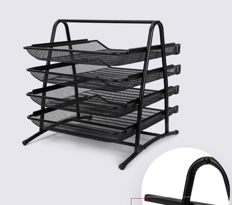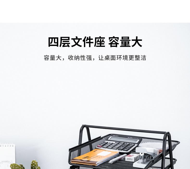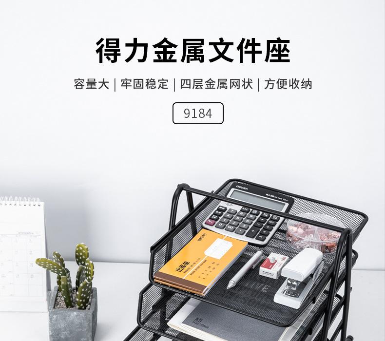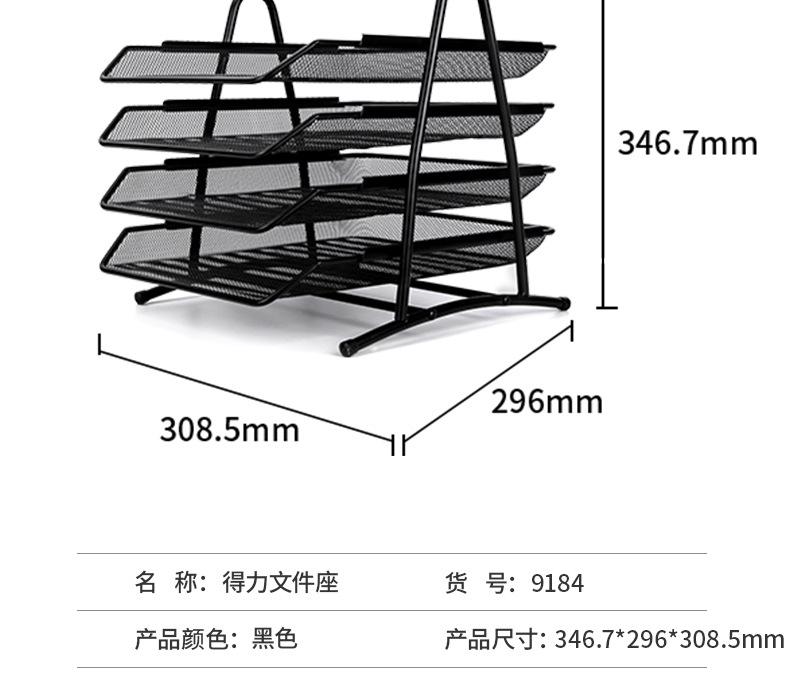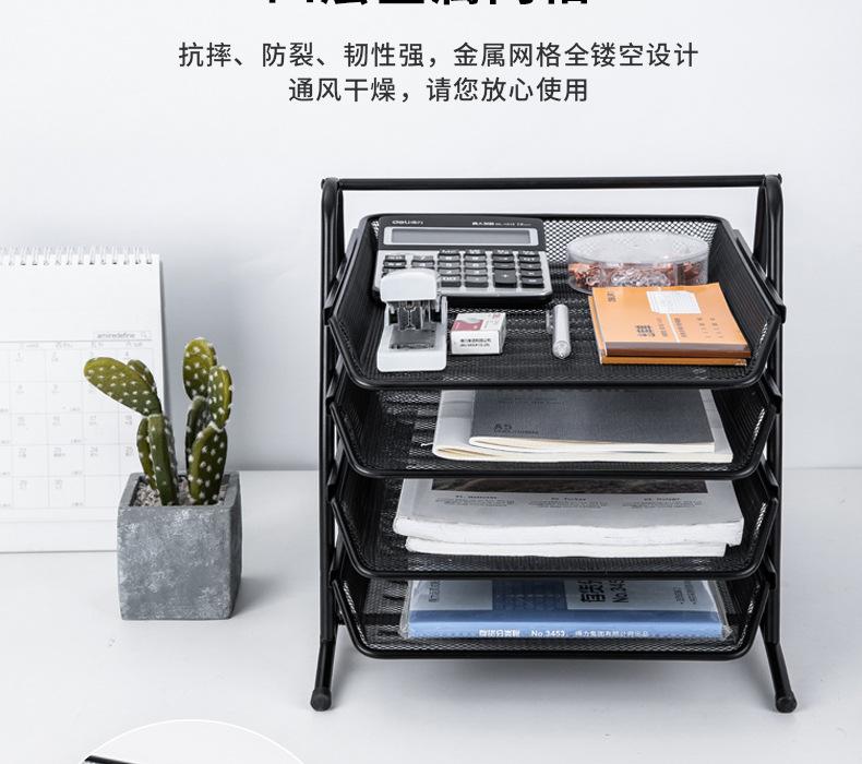 Estante de archivos de malla Deli 9181, soporte para archivos de tres capas y cuatro capas, cesta para datos, marco de almacenamiento, organizador, estante de almacenamiento de metal