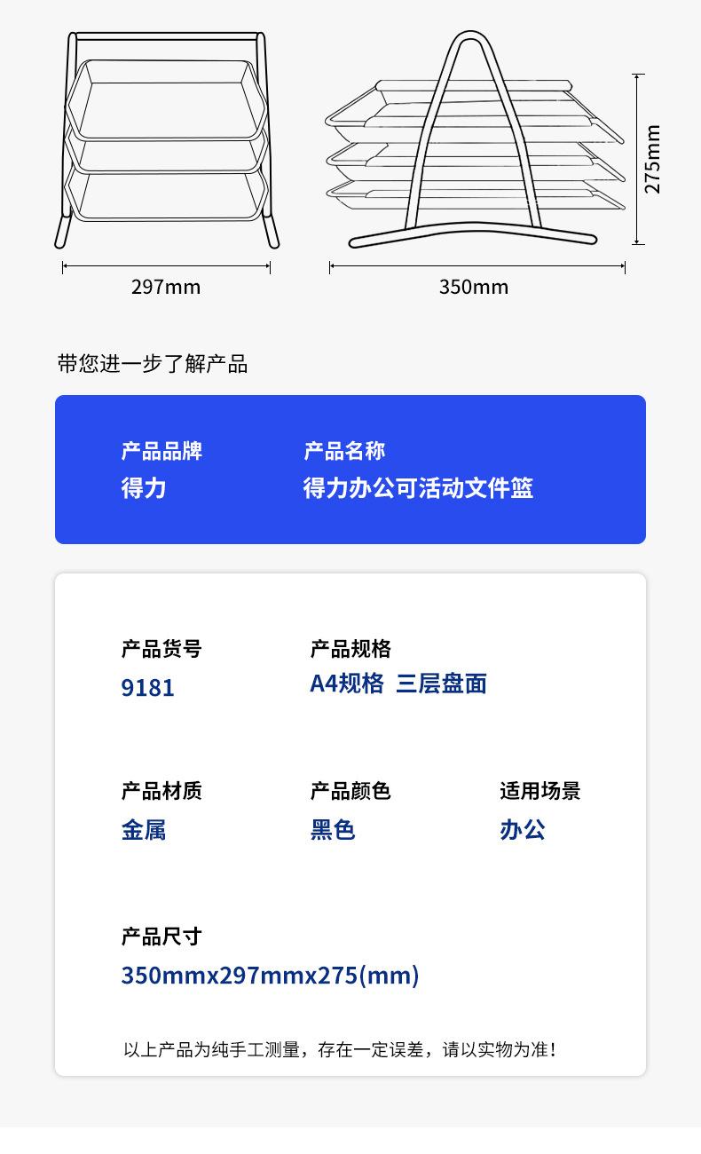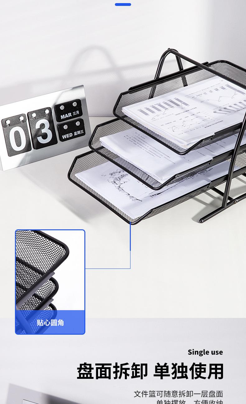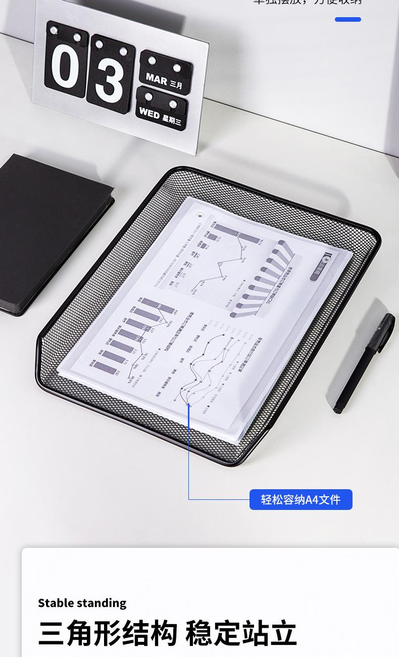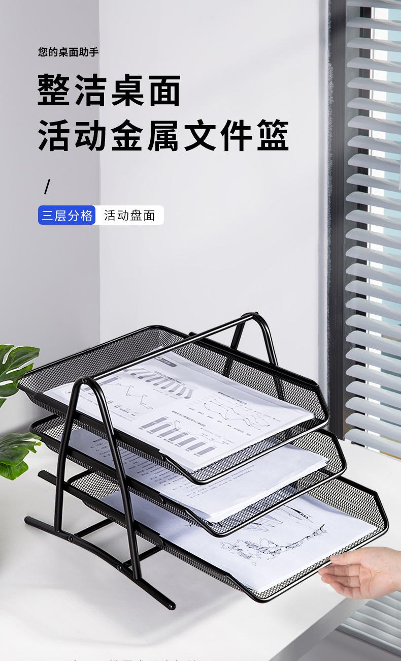 Estante de archivos de malla Deli 9181, soporte para archivos de tres capas y cuatro capas, cesta para datos, marco de almacenamiento, organizador, estante de almacenamiento de metal