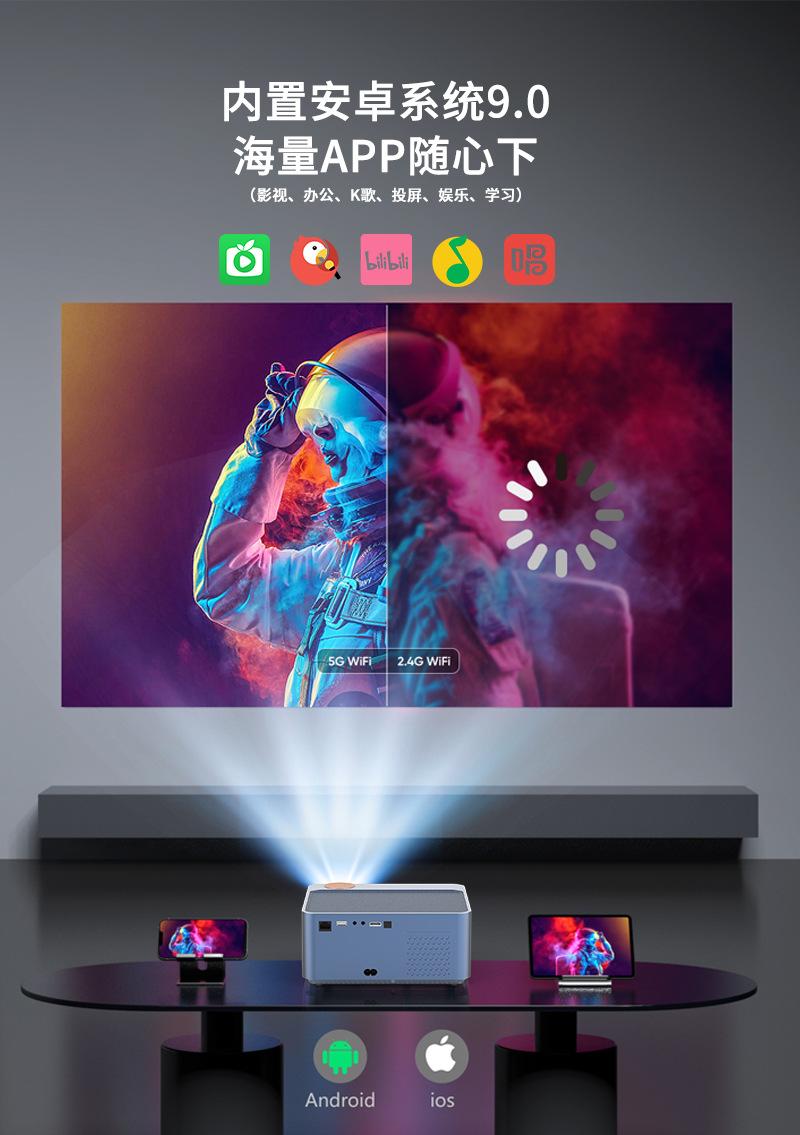 Proyector doméstico de ultra alta definición 2022, cine en casa, banda dual 5G, inteligente, inalámbrico, WIFI, para teléfono móvil