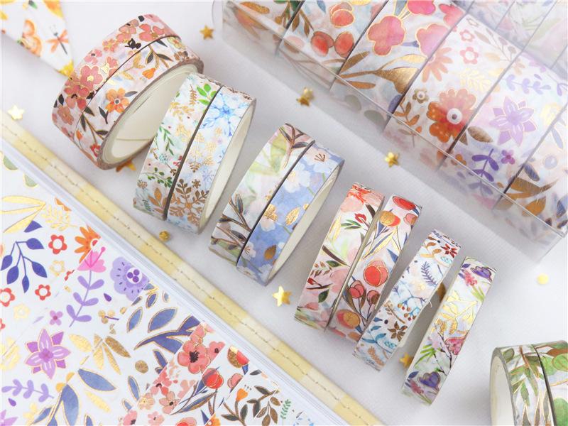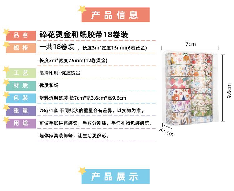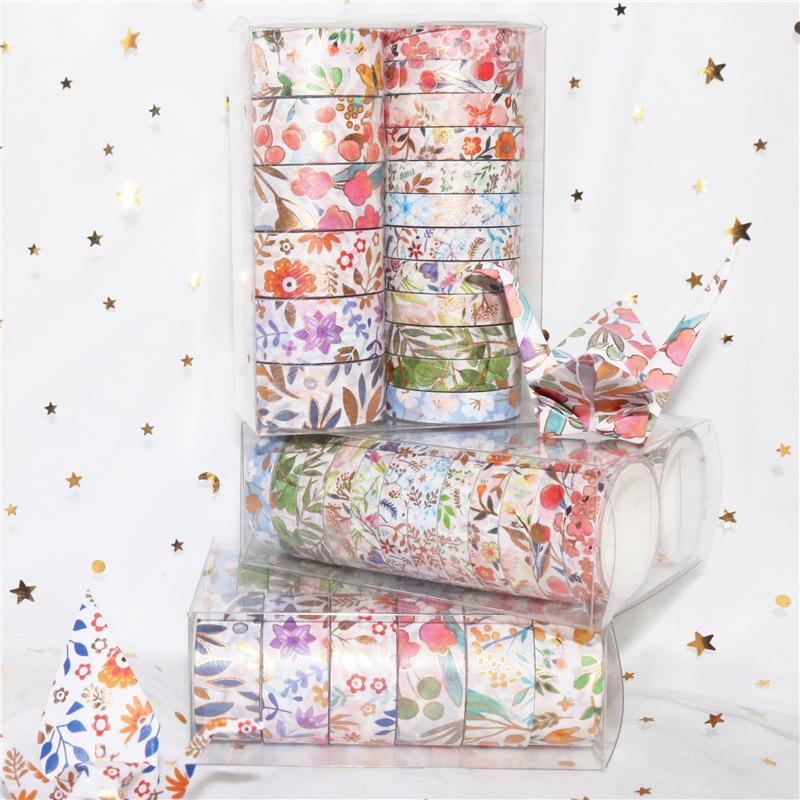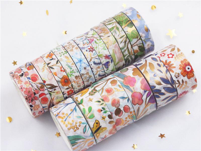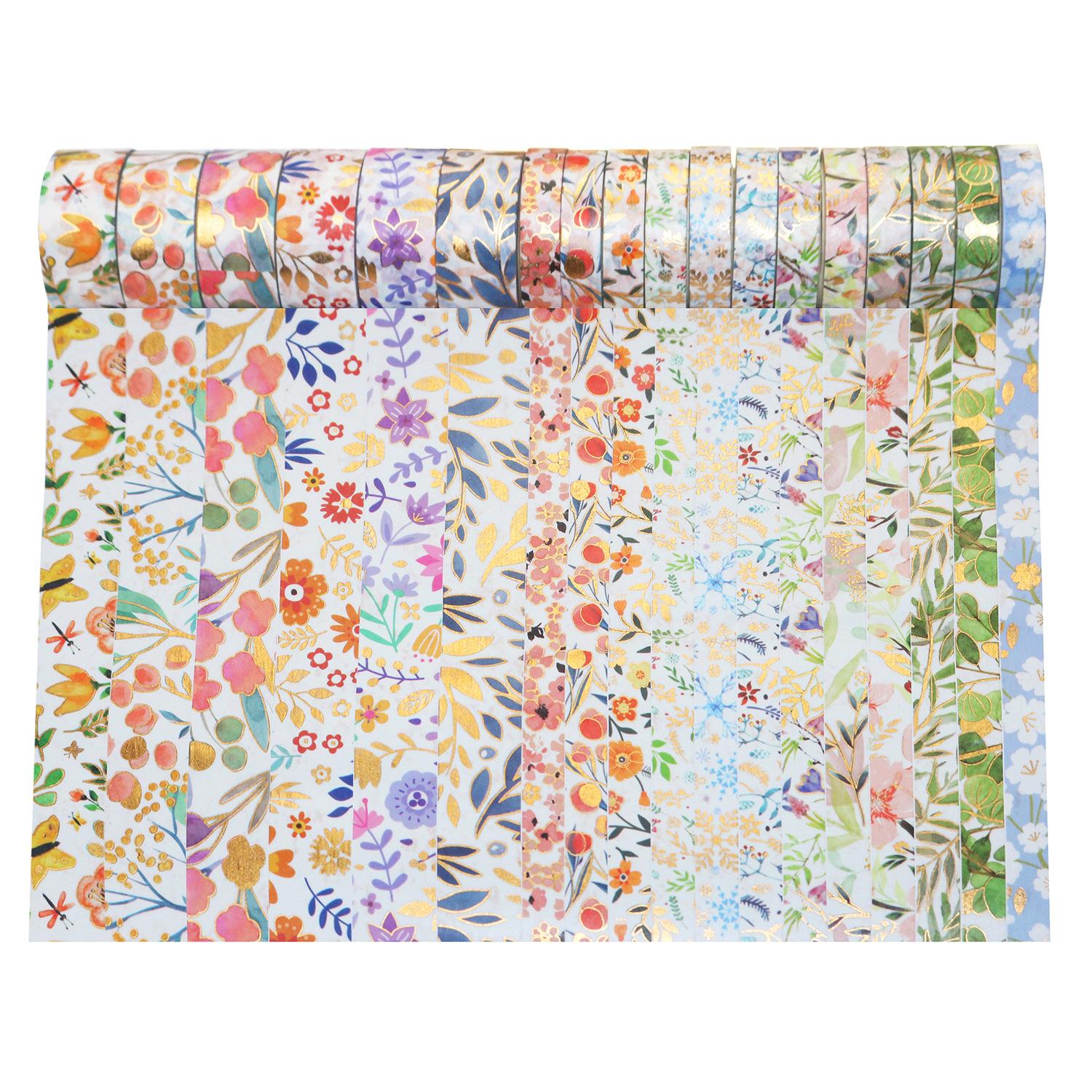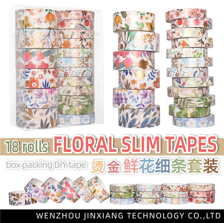 Suministro de Comercio Exterior Decoración de Borde de Diario DIY Pegatinas Transfronterizas Flores de Lámina Dorada Tiras Delgadas 18 Rollos Cinta Washi