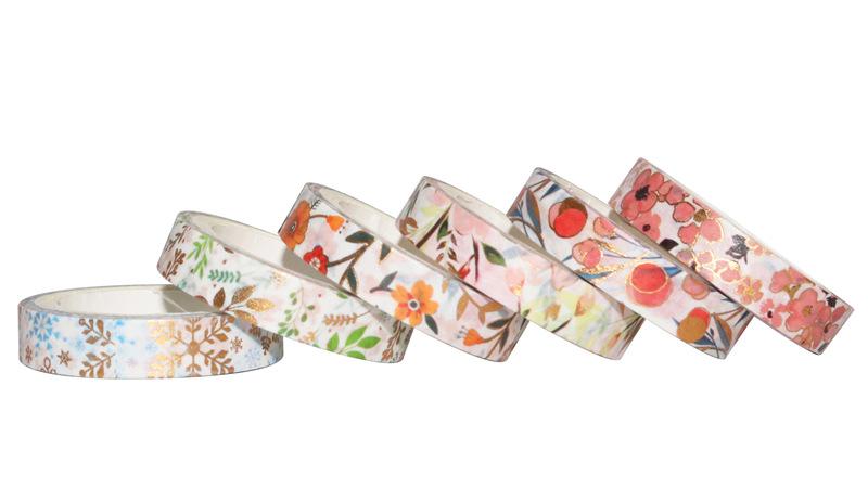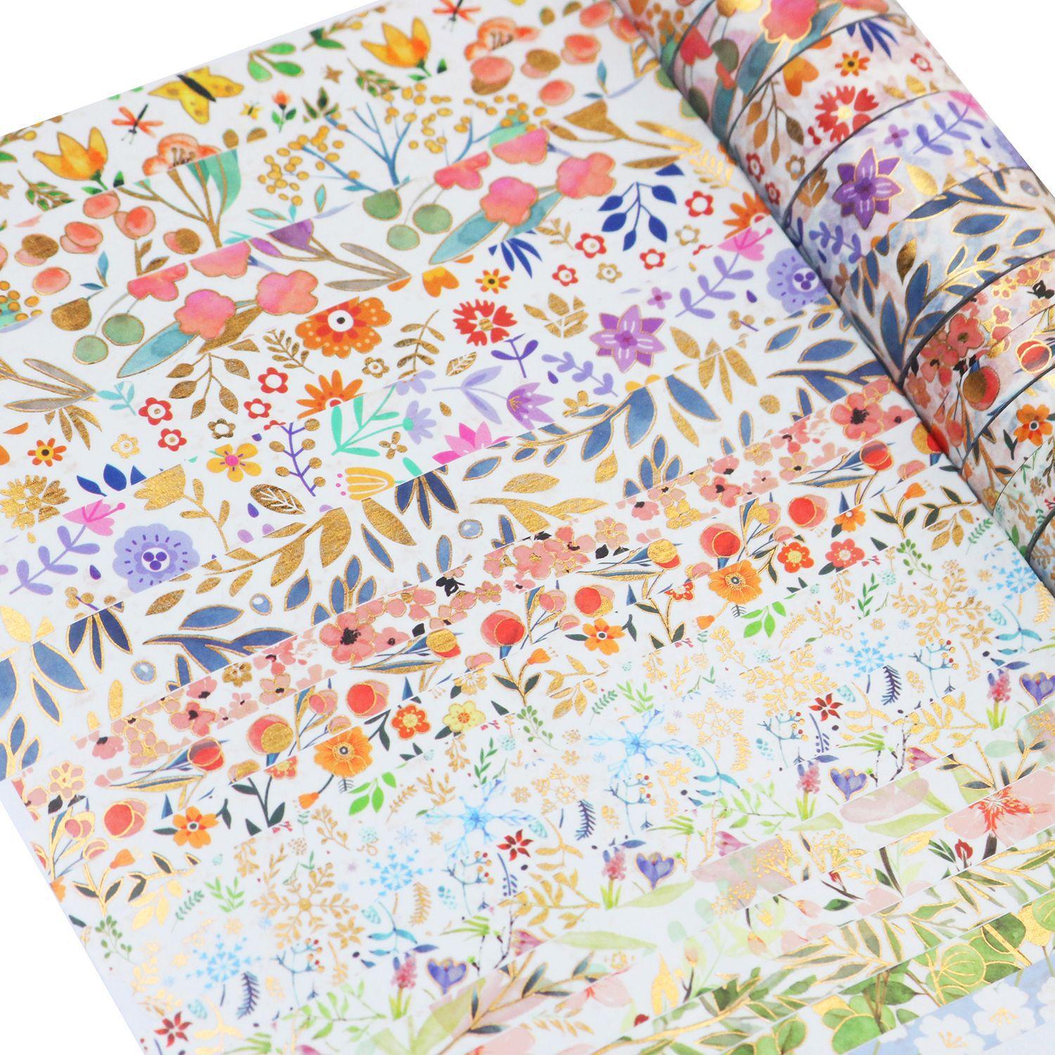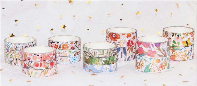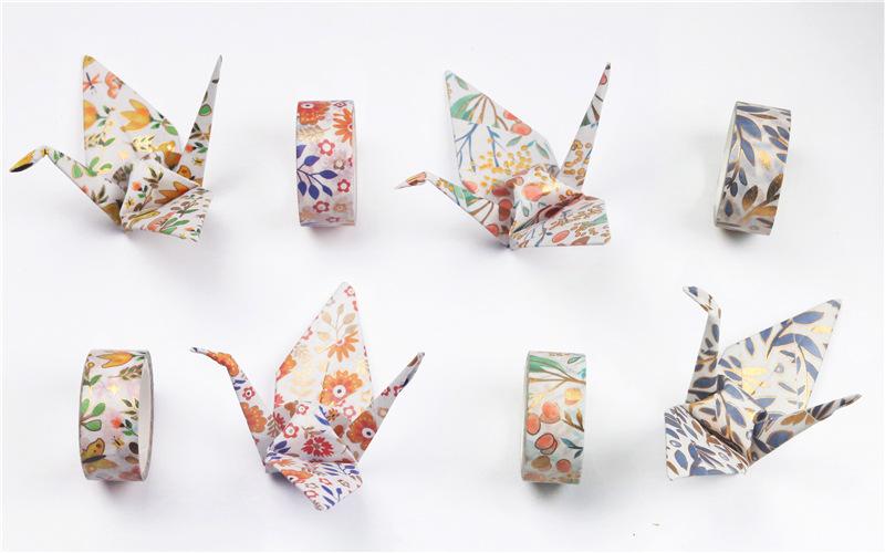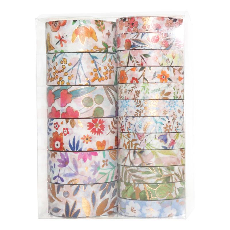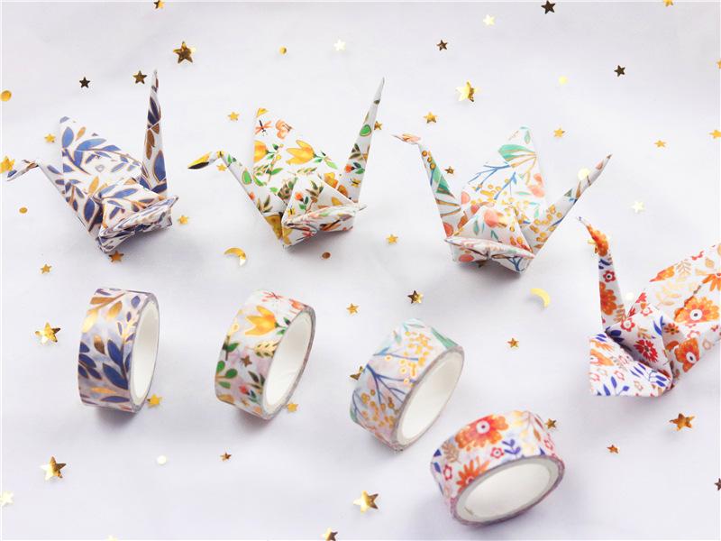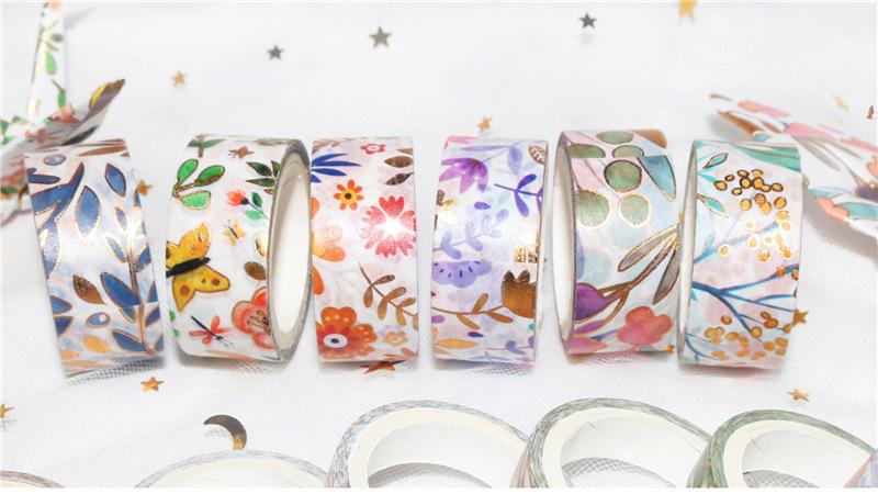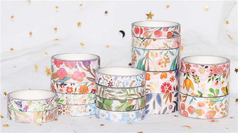 Suministro de Comercio Exterior Decoración de Borde de Diario DIY Pegatinas Transfronterizas Flores de Lámina Dorada Tiras Delgadas 18 Rollos Cinta Washi