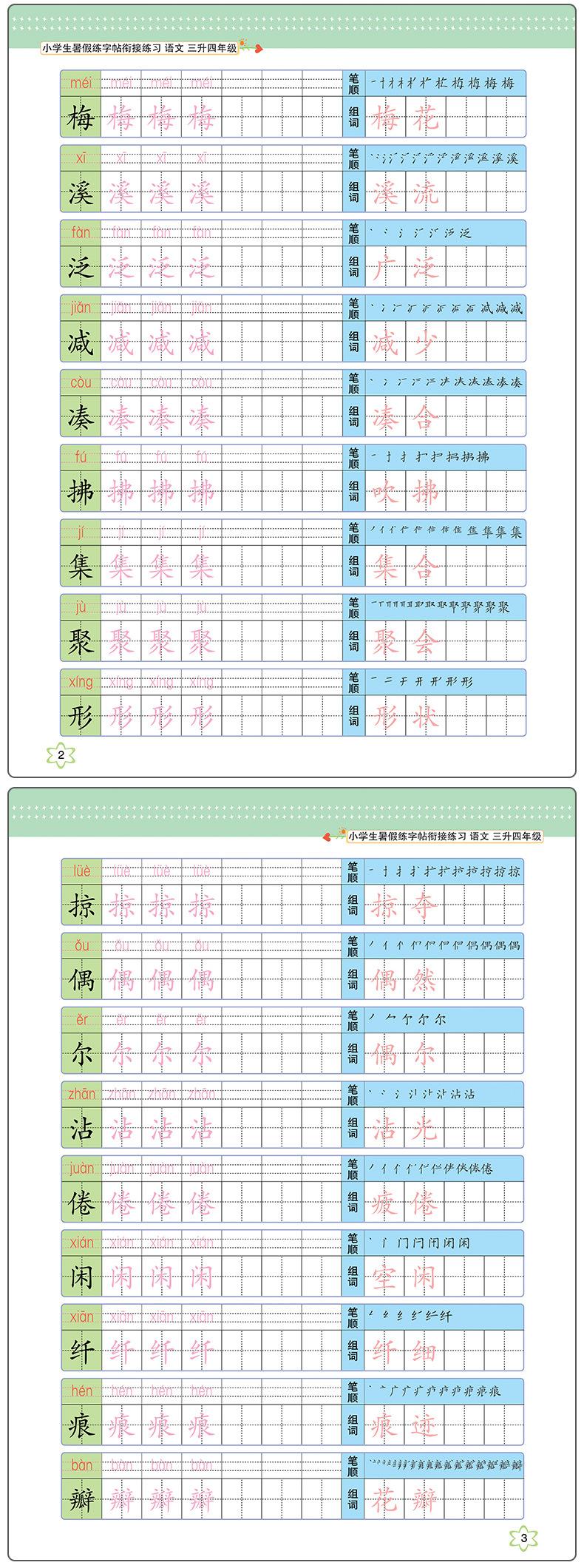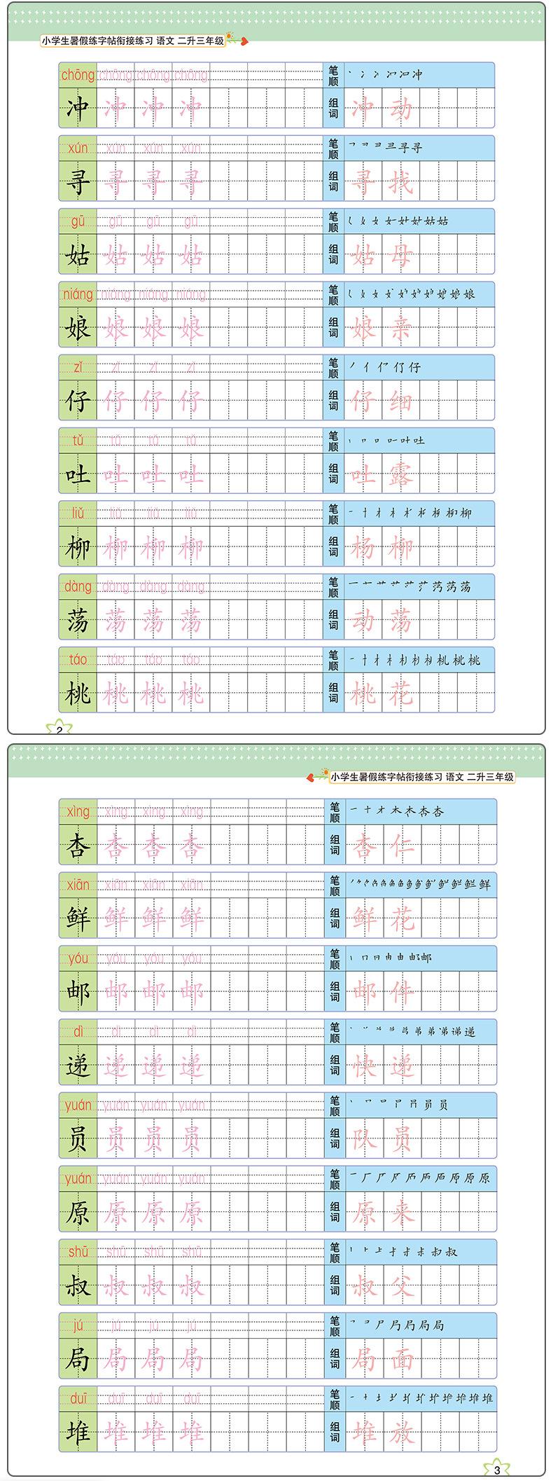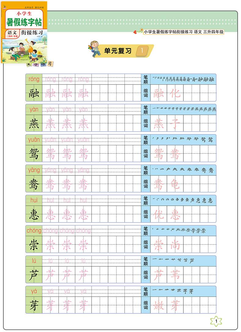 Estudiantes de escuela primaria practican las vacaciones de verano cuaderno de copia práctica de conexión chino Grado Uno dos tres cuatro Edición de Educación Popular lápiz trazado rojo sincronización