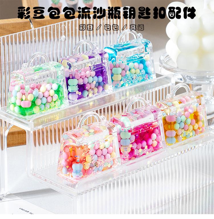 Puf luminoso de color en la botella de arena movediza de aceite, decoración de escritorio, llavero acrílico, colgante para bolso, pequeño regalo al por mayor
