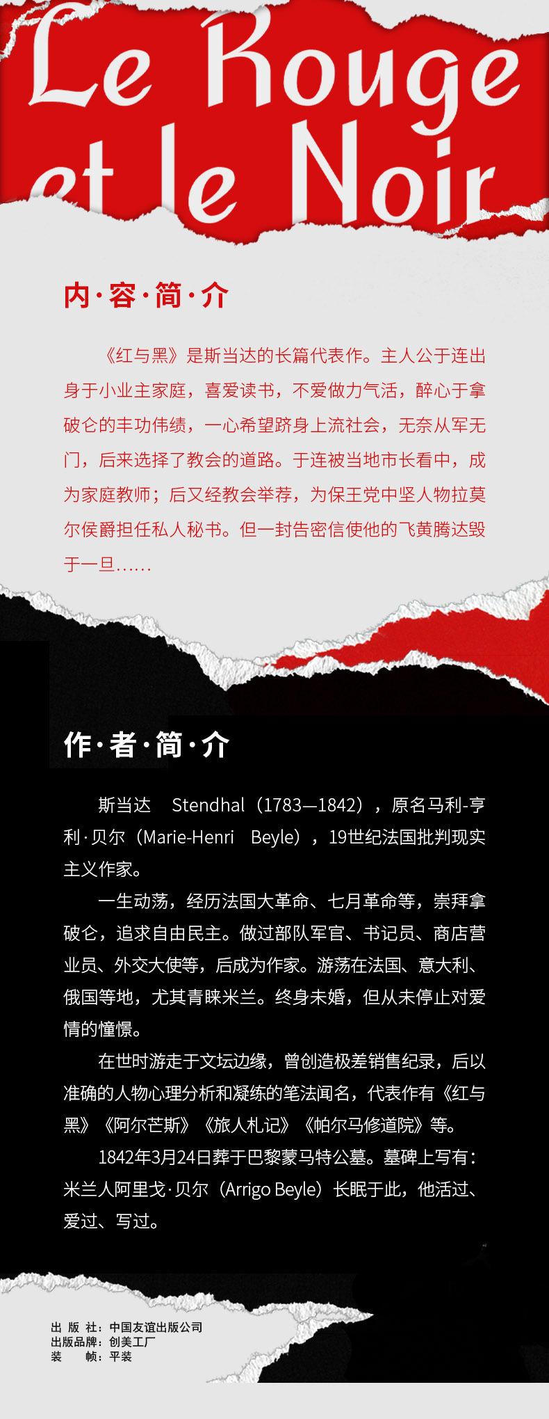 El Rojo y el Negro es la extensa obra maestra de Stendhal. El protagonista, Julien, nació en una familia de pequeños terratenientes. Ama la lectura y le disgusta el trabajo duro. Está fascinado por los grandes logros de Napoleón y aspira a entrar en la alta sociedad. Sin embargo, no tiene forma de alistarse en el ejército y finalmente elige el camino de la iglesia. Julien fue favorecido por el alcalde local y se convirtió en tutor. Más tarde, la iglesia lo recomendó para servir como secretario privado del Marqués de La Mole, figura clave del partido realista. Pero una carta de denuncia arruinó su meteórico ascenso...