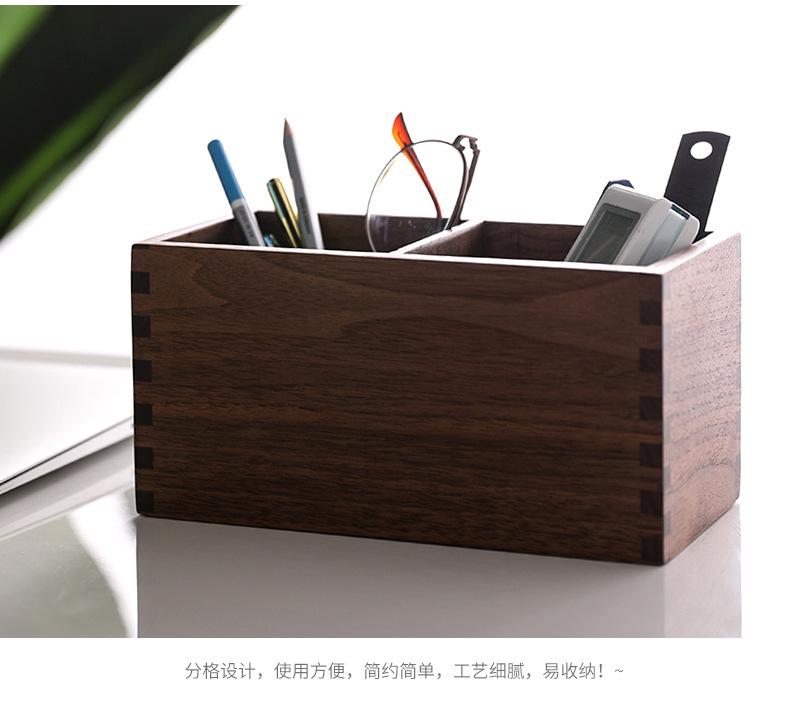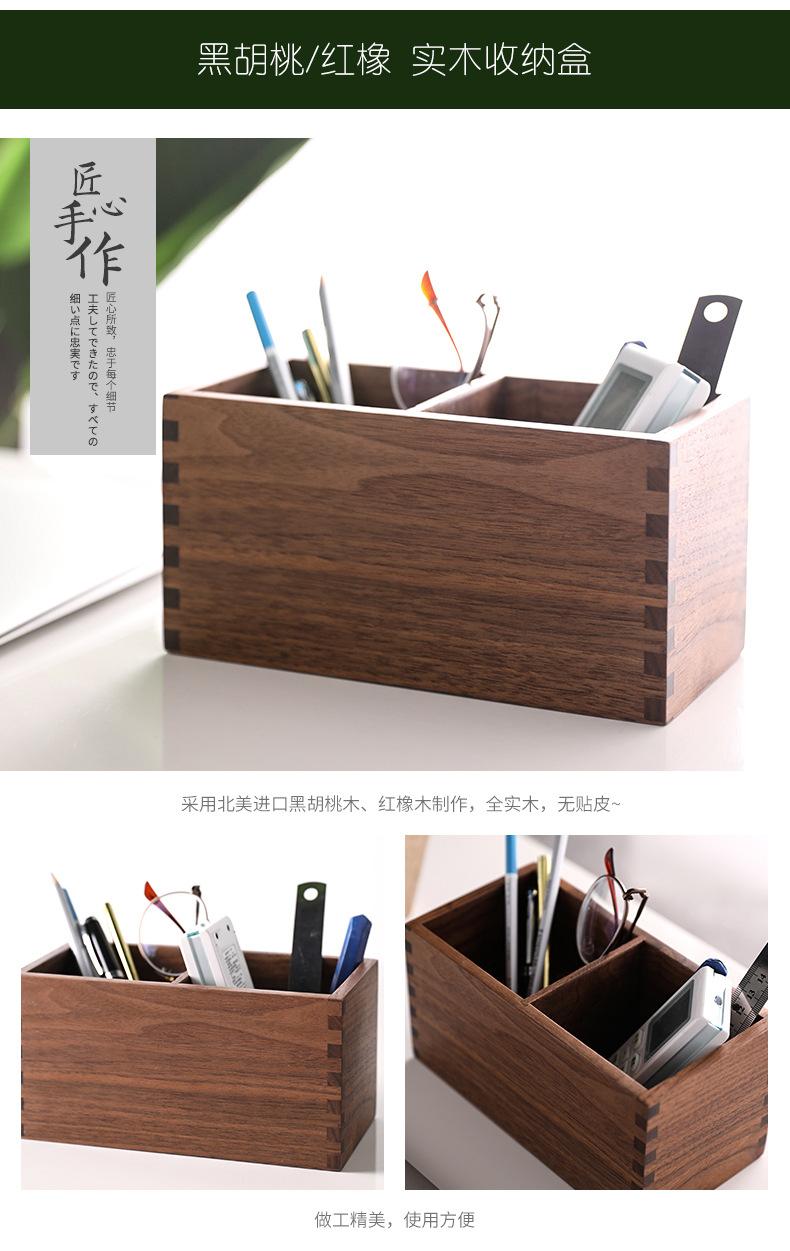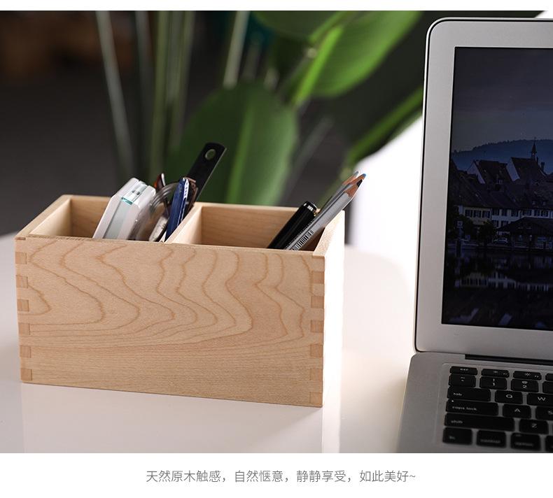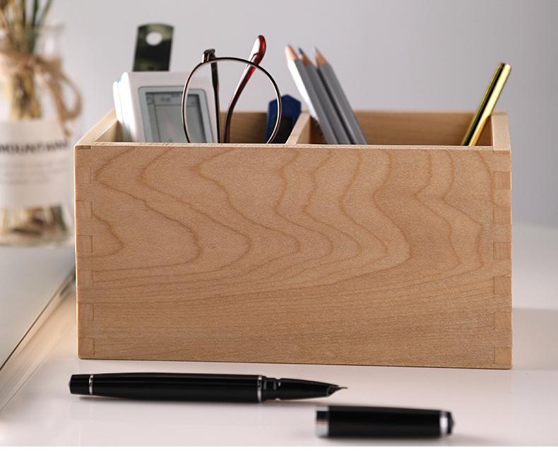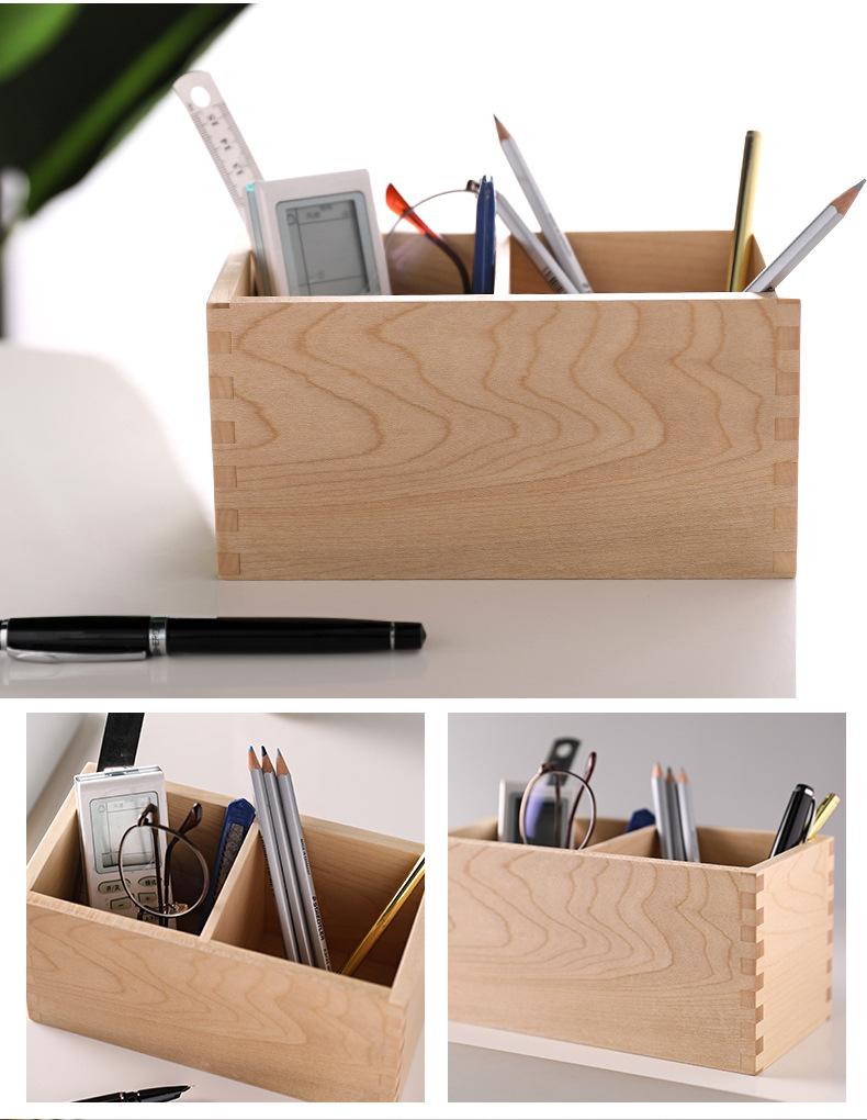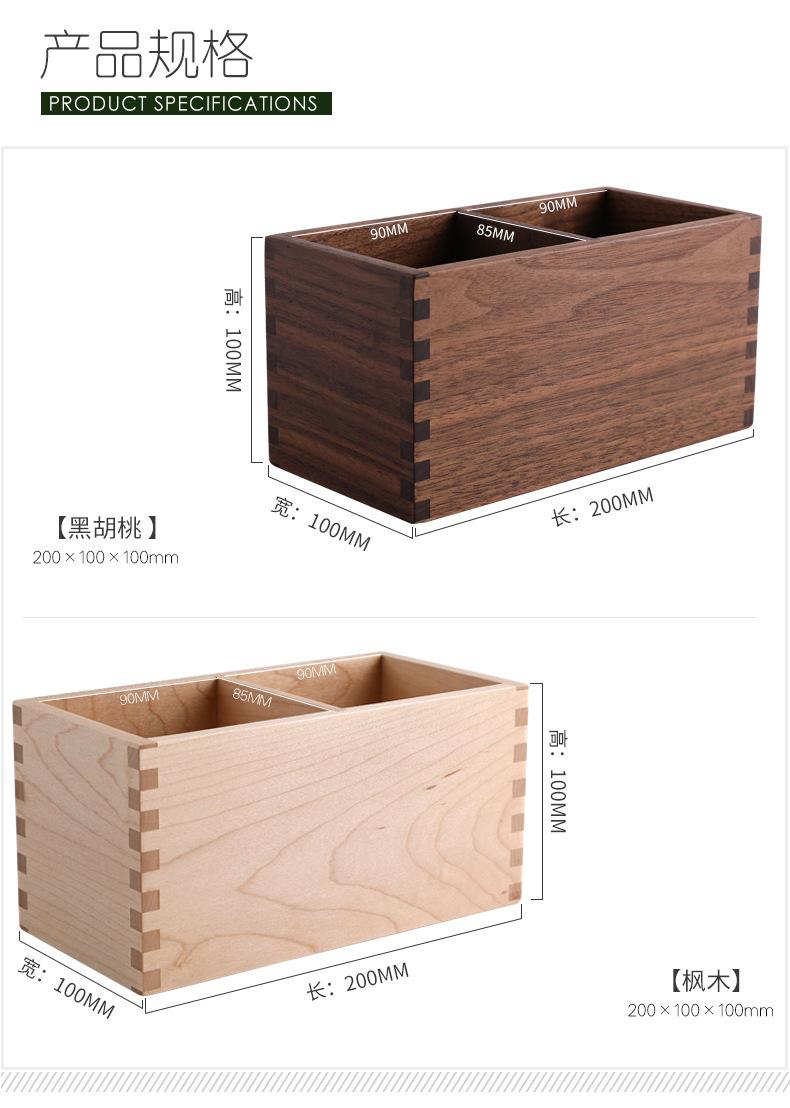 Caja de Almacenamiento de Madera Maciza para Lápices, Cuadrada, Doble Compartimento, Almacenamiento para Brochas de Maquillaje, Suministros de Escritorio para Oficina, Almacenamiento de Madera, Regalos para Estudiantes