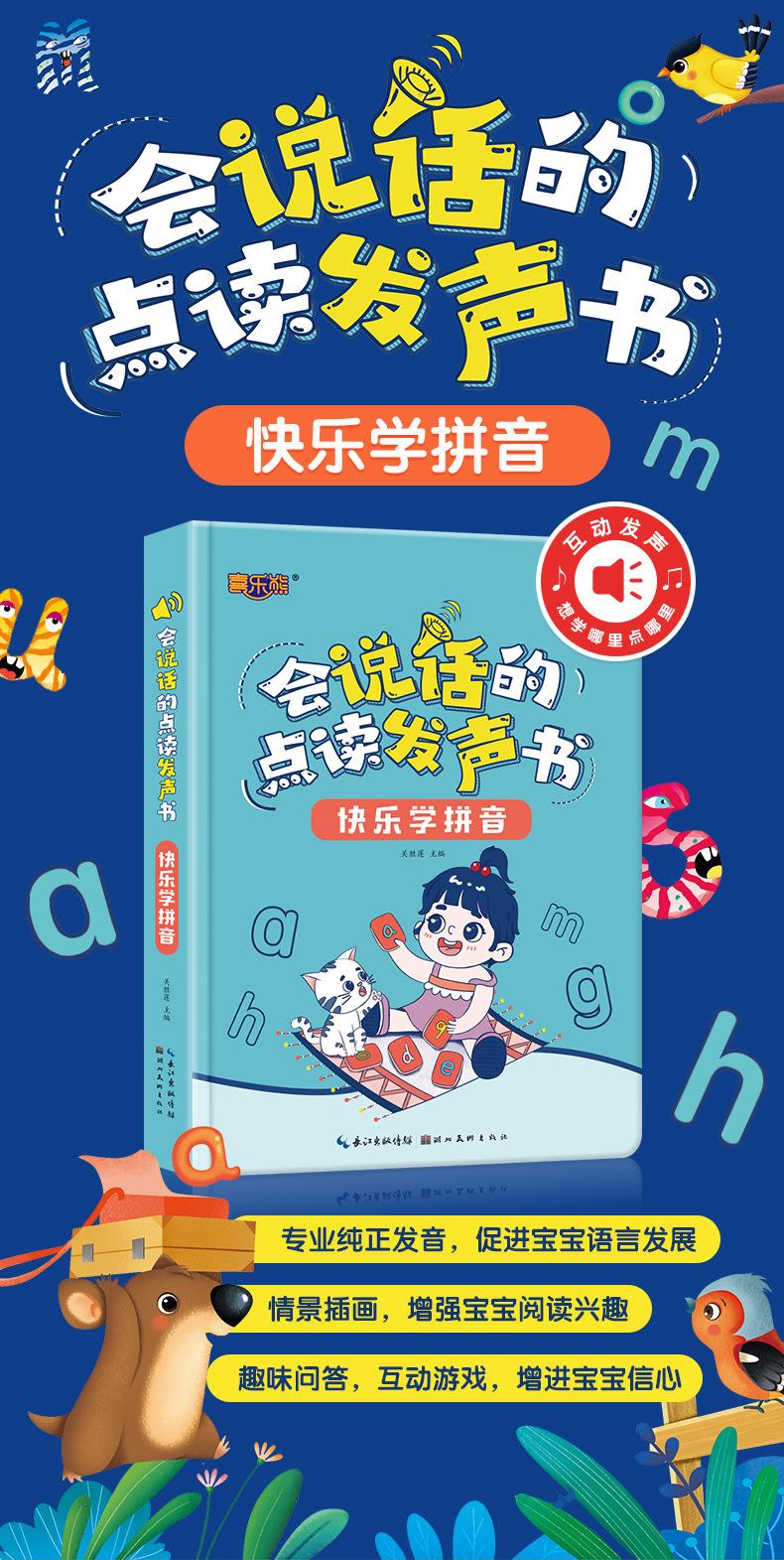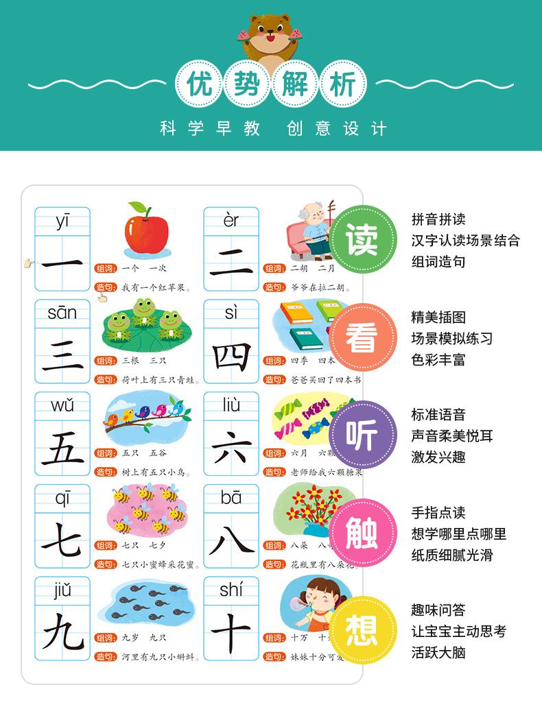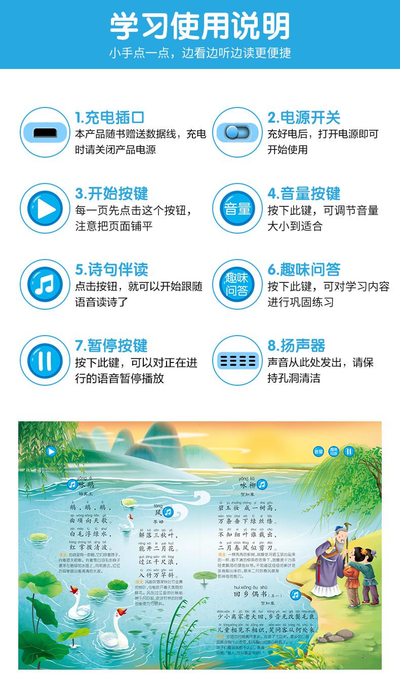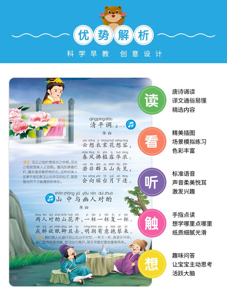 Oso feliz de 0 a 6 años que habla, lee libros con voz, aprende poesía Tang y pinyin, y libros ilustrados para niños.