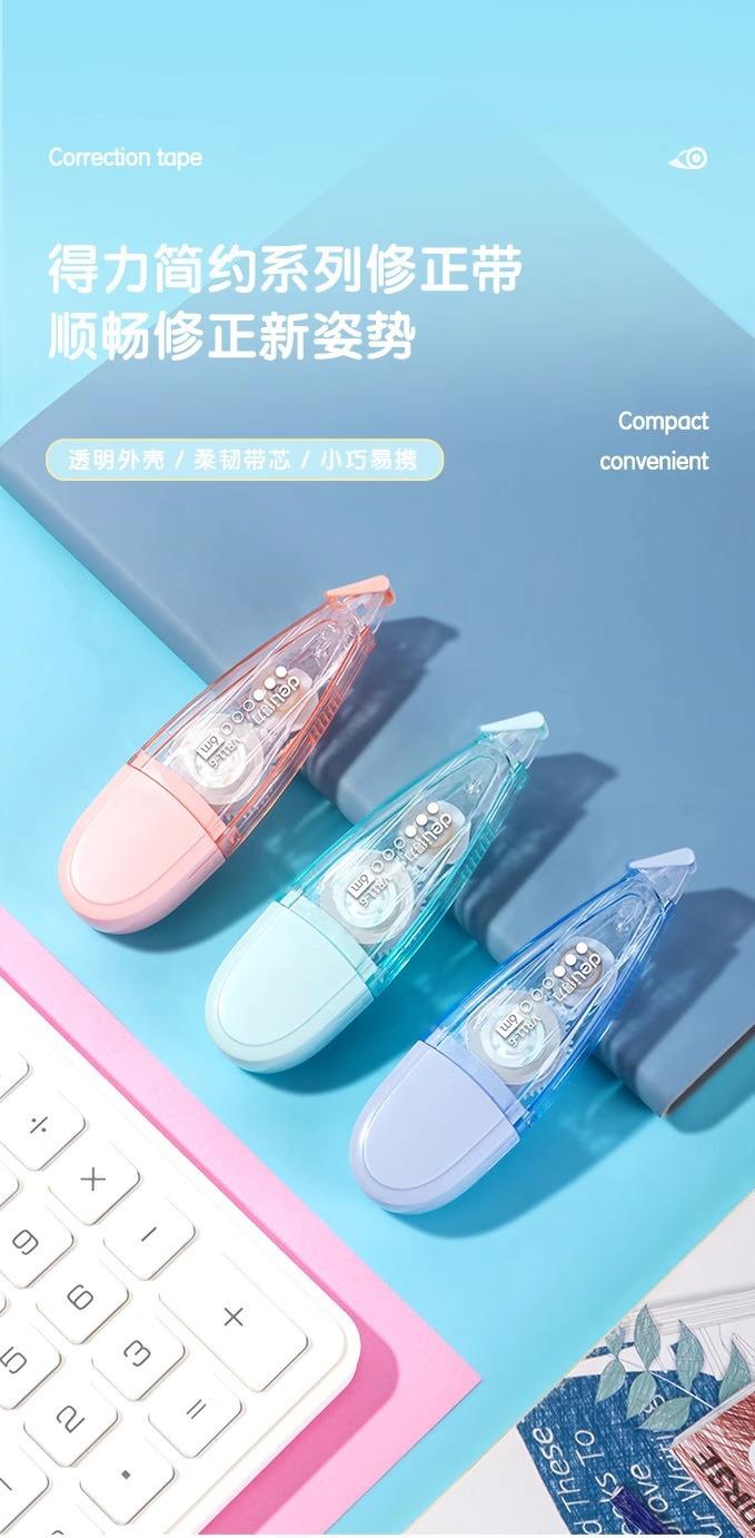Cinta correctora Deli Deli VR11-6, tipo bolígrafo, 6 m, con núcleo reemplazable para estudiantes de secundaria.