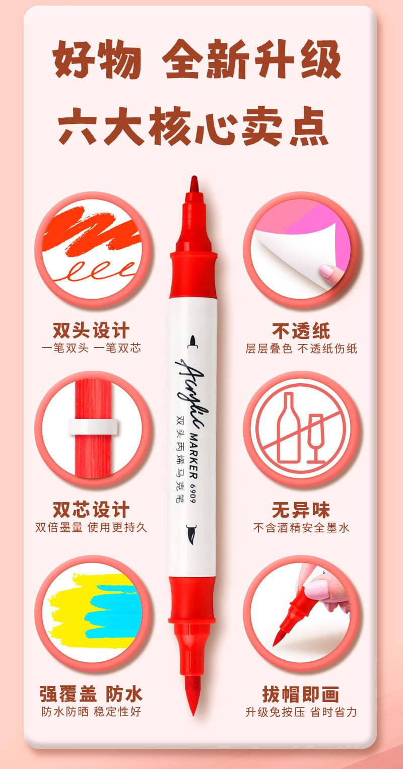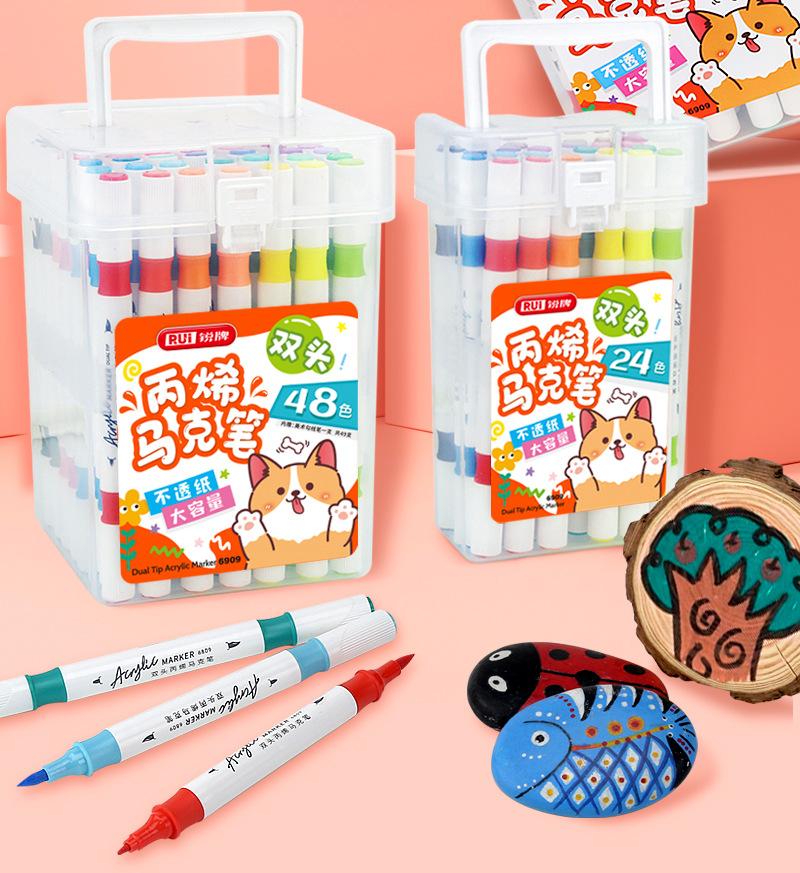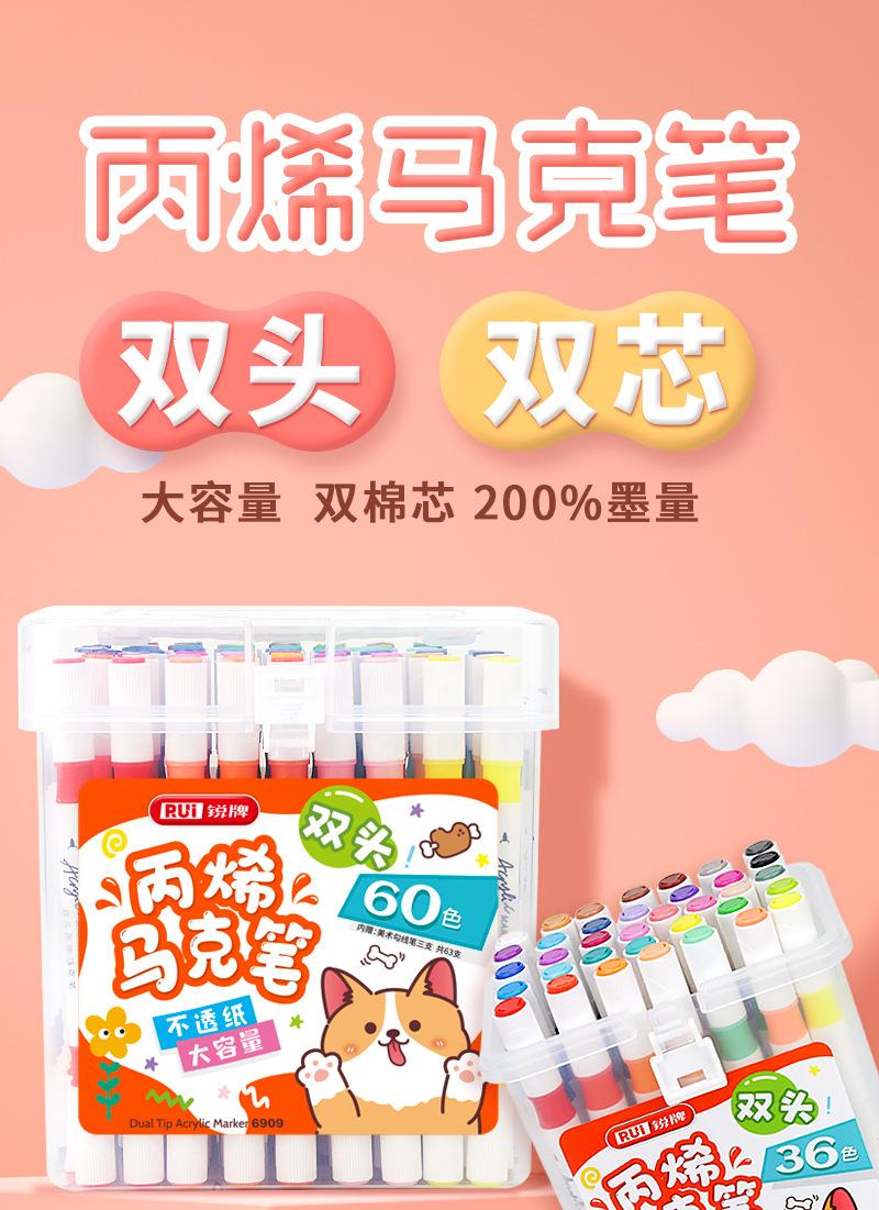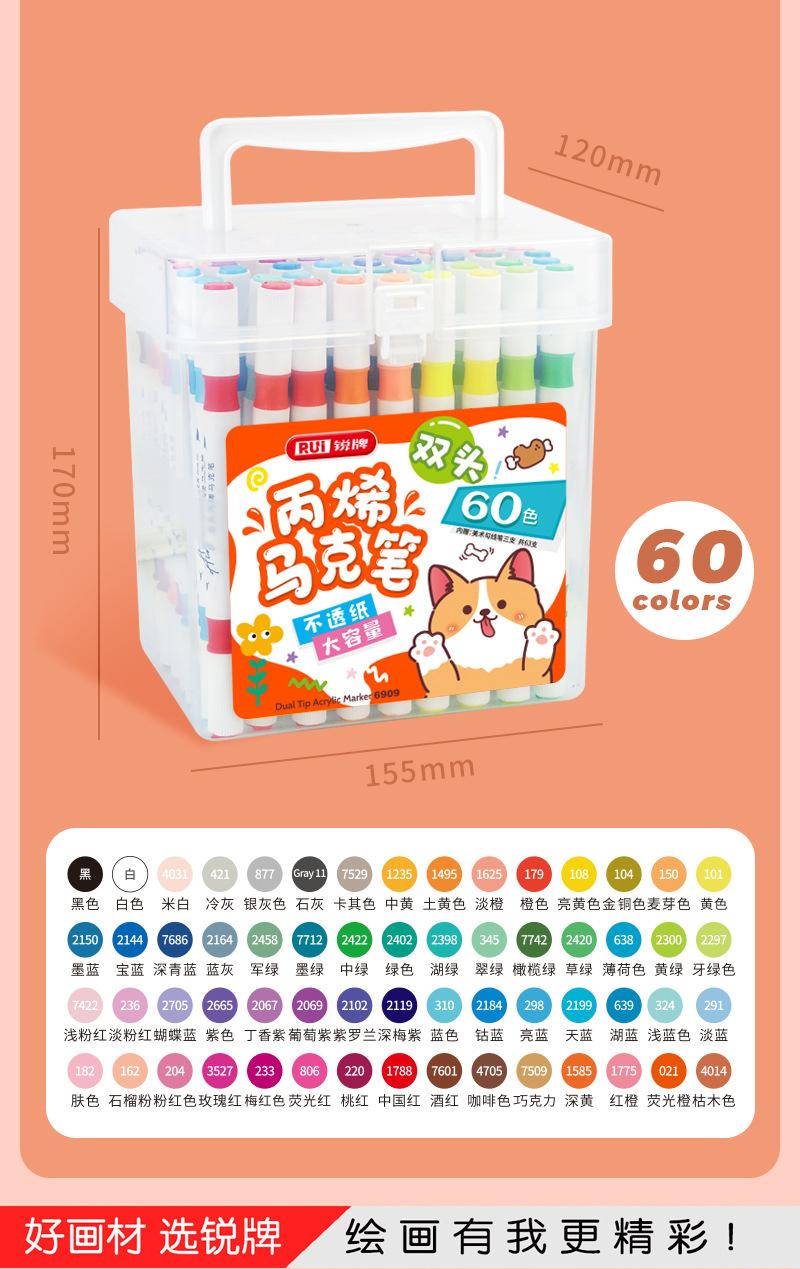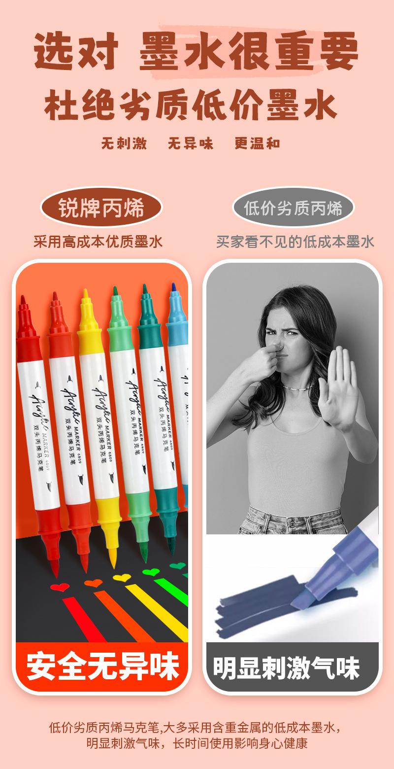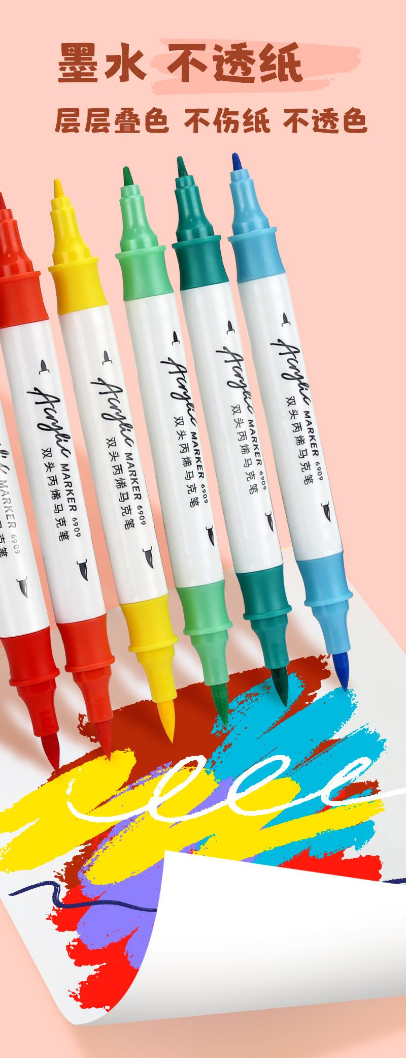 Marcador Acrílico de Doble Punta Punta Suave Opaco Papel Apilable Color para Niños y Estudiantes Pintado a Mano 60 Colores Plumas de Color Lavables Venta al por Mayor