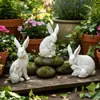 Conjunto de animales de simulación de jardín, tres madres y niños, conejos, artesanías de resina para jardín, decoración del hogar, sala de estar, patio, adornos de paisaje