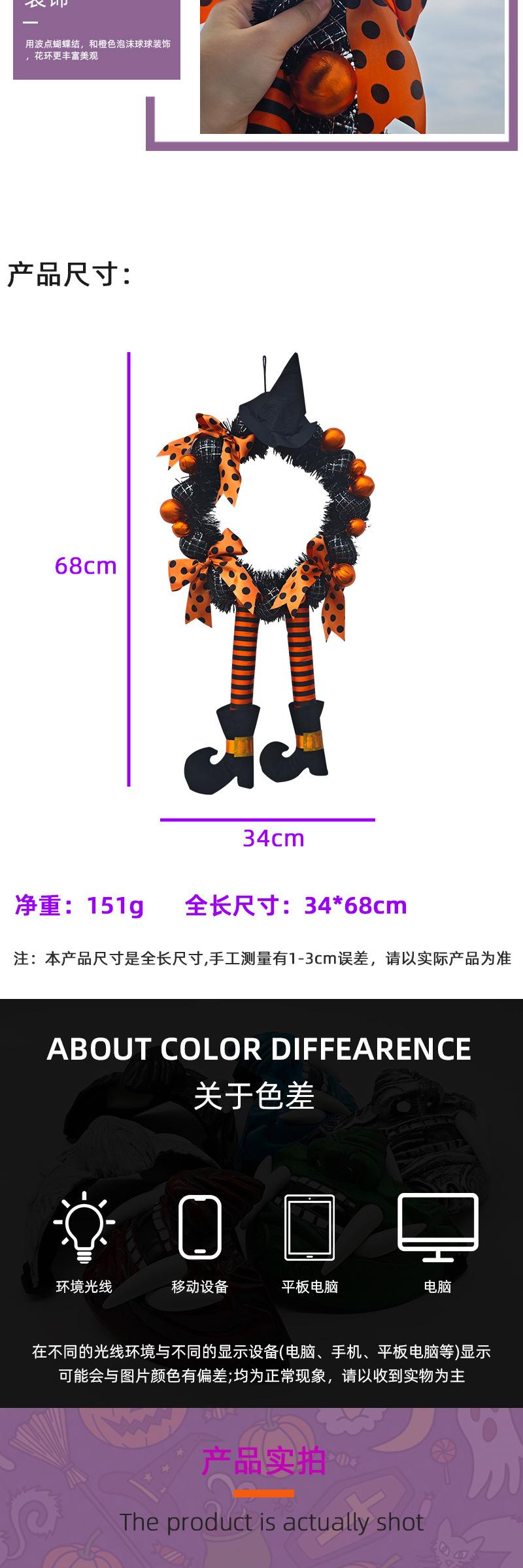 Corona de Halloween Transfronteriza para Colgar en la Puerta Esqueleto Decoración Colgante de Casa Embrujada Accesorios de Ambiente Festivo Arreglo Festivo