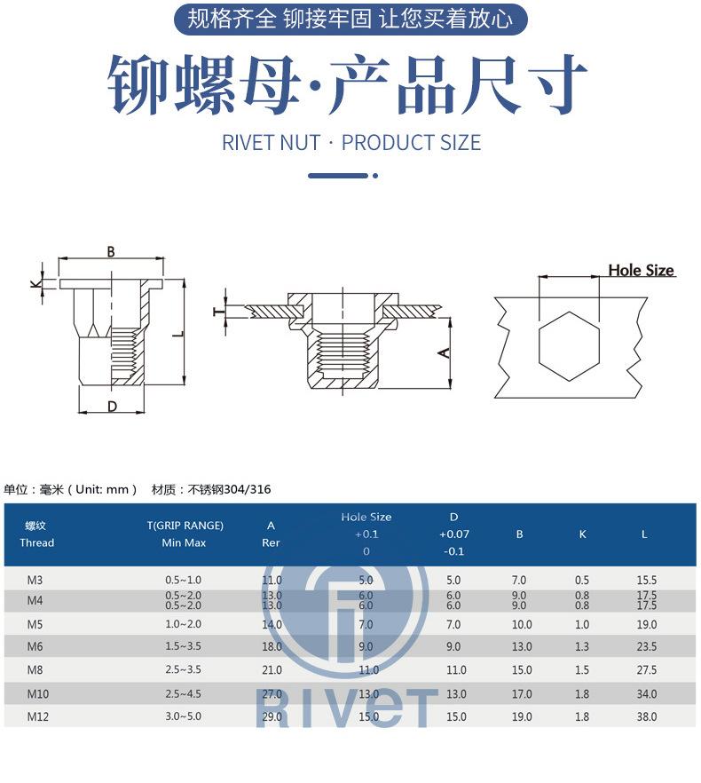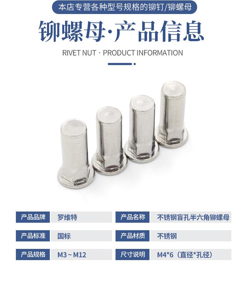 Tuerca Remachable Rovit Acero Inoxidable Semiexagonal Borde Grande Agujero Ciego M4M5M6M8M10500 Pedido Mínimo Alta Resistencia A2