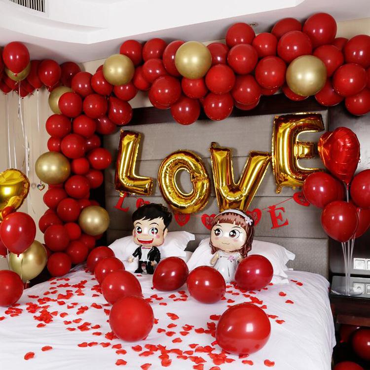 Globo de látex rojo doble gema Día de San Valentín boda habitación de boda decoración ambiente de boda Globo Rojo de Internet