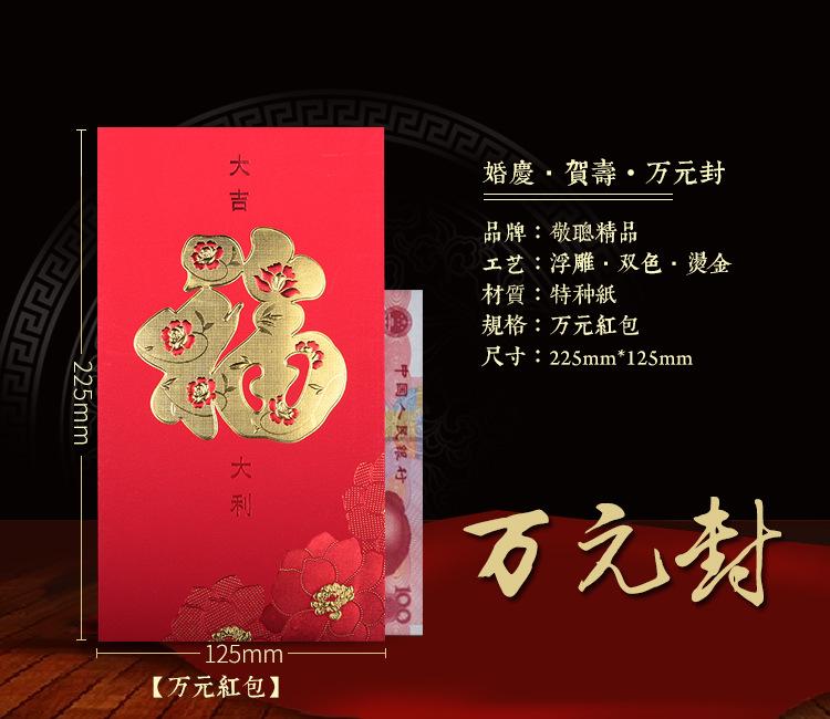 Diez mil yuan sobre rojo palabra de la suerte inauguración de casa cumpleaños boda regalo general alta gama súper talla grande yuan sobre rojo
