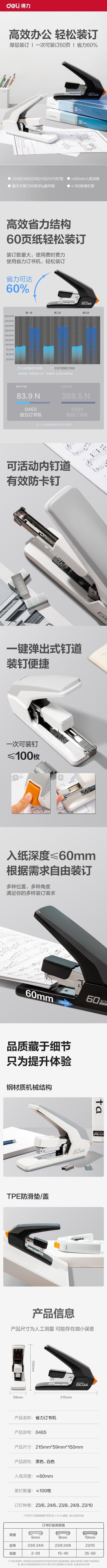 Deli 0371 Grapadora de Ahorro de Esfuerzo 0465 Grapadora Portátil Grapadora 40/60 Páginas