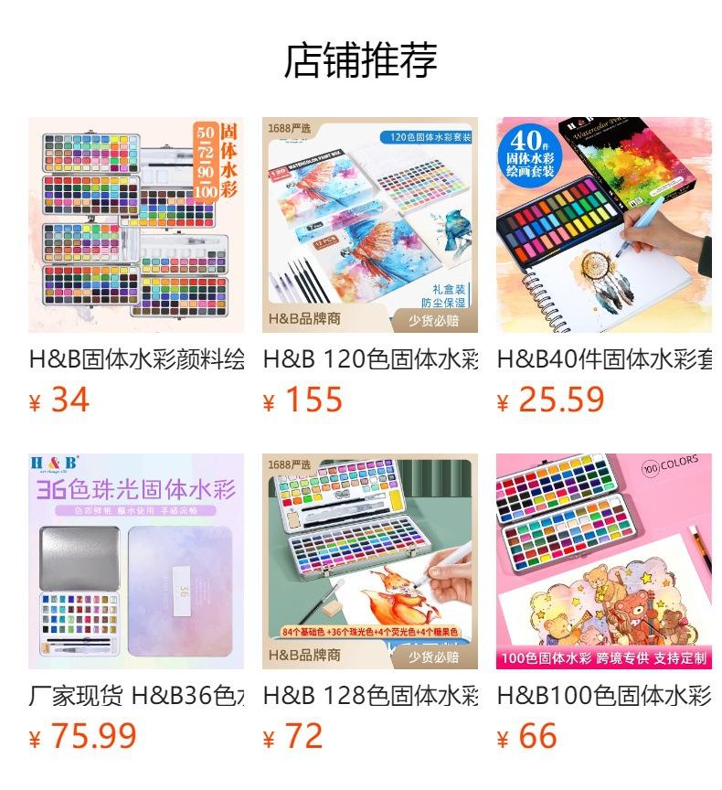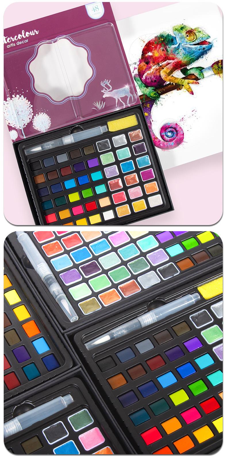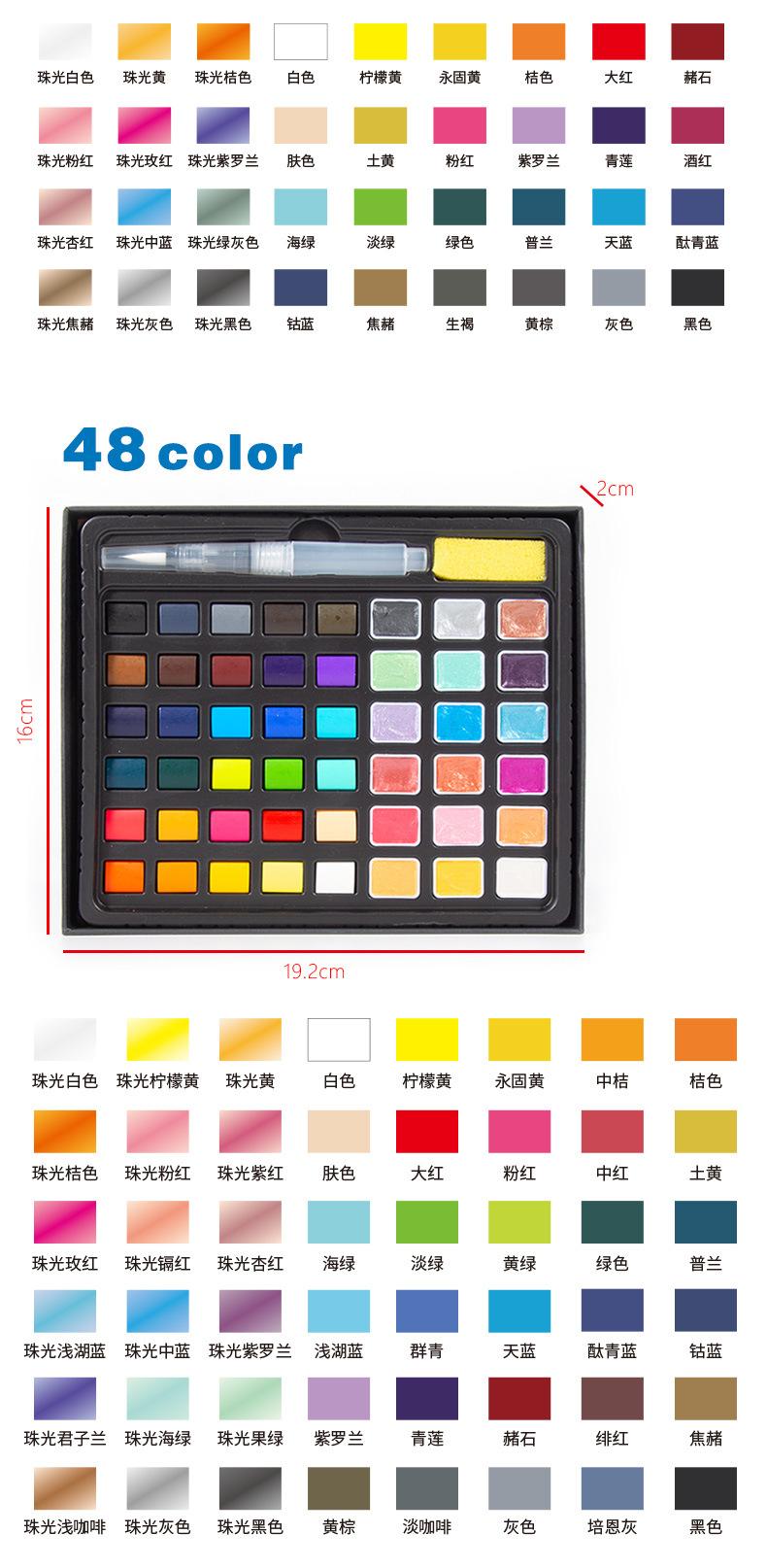 Ventas Calientes Transfronterizas Caja de Pintura Acuarela Sólida 48 Colores Pigmento para Pintura para Estudiante de Arte Set de Materiales Pintados a Mano Perlado