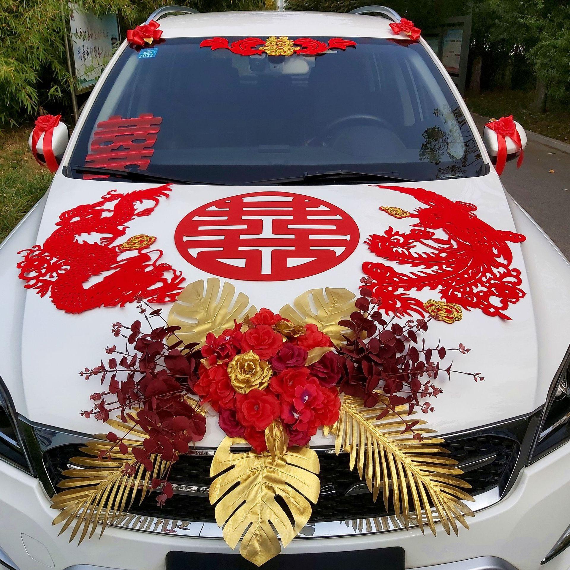Esta flor para coche viene con una ventosa, no daña el coche y se puede usar para decorar el coche de bodas en minutos.