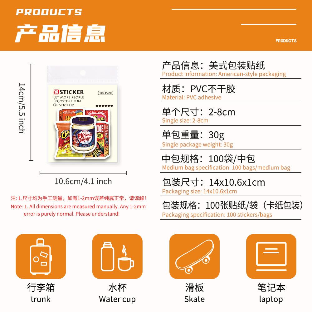 100 pegatinas de dibujos animados para embalaje americano, para manualidades, para equipaje, cuaderno, papelería, pegatinas impermeables para niños, venta al por mayor