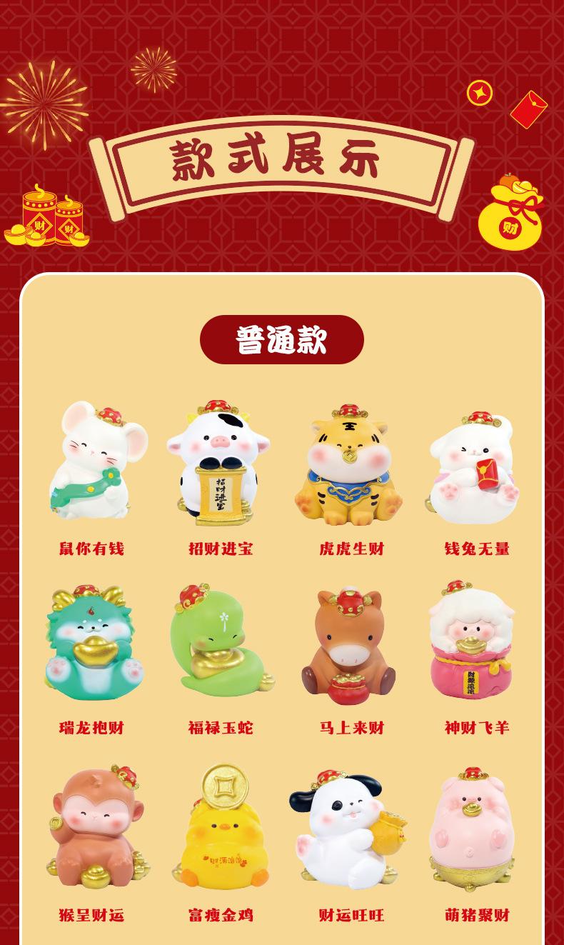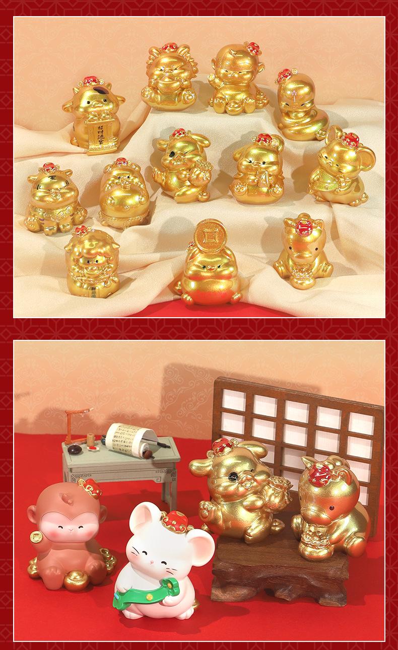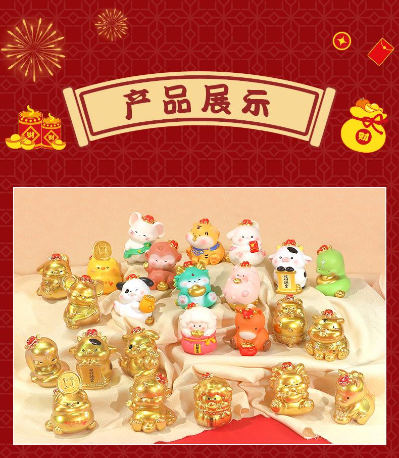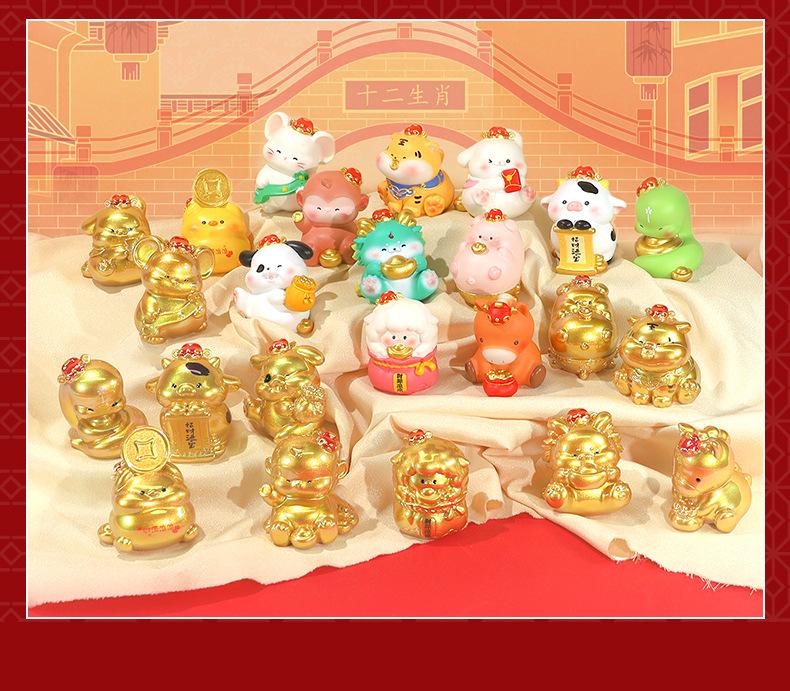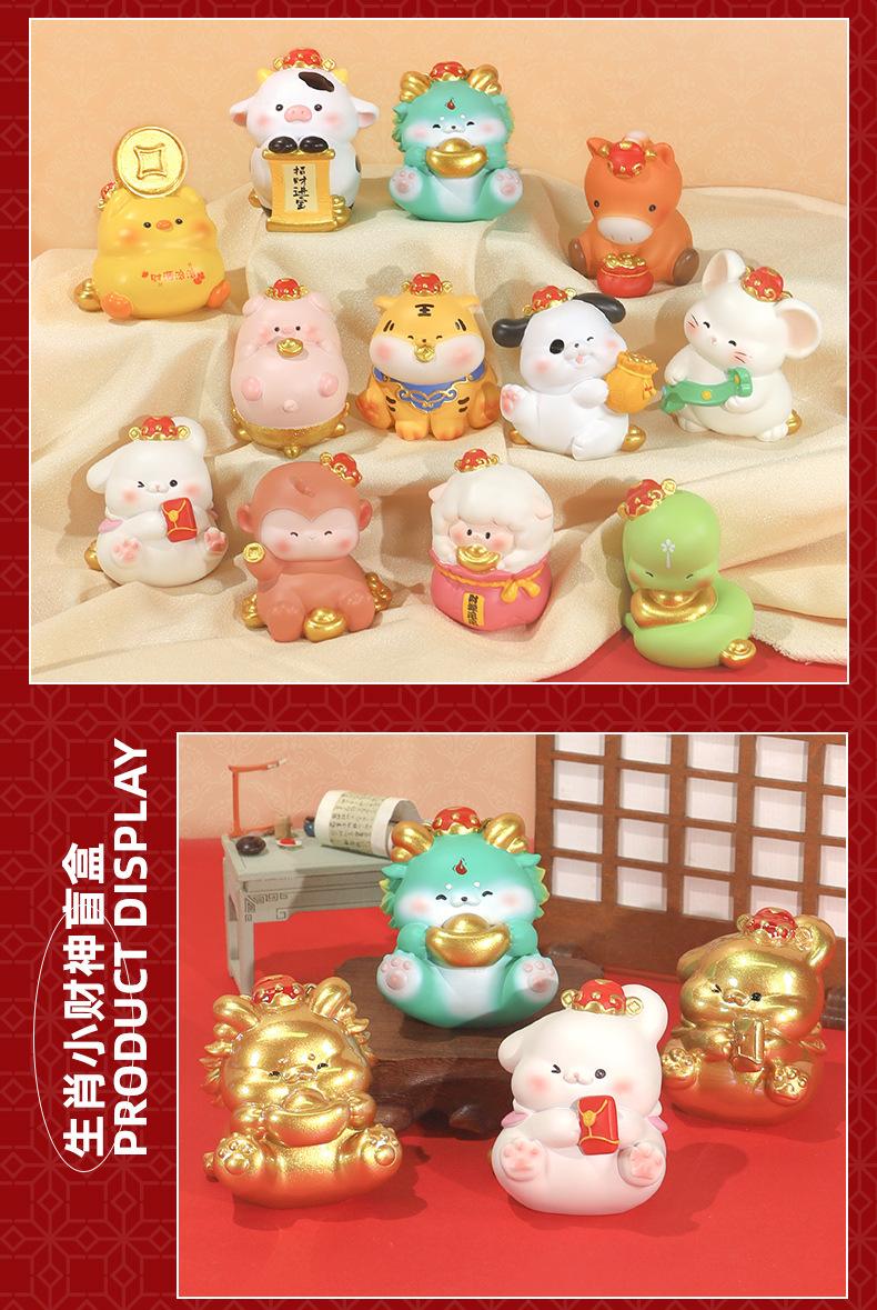 Zodiaco Pequeño Dios de la Riqueza Caja Ciega Festivo de Año Nuevo Hecho a Mano Adorno de Resina Doce Zodiaco Lindo Regalo Exquisito