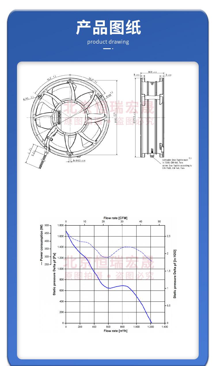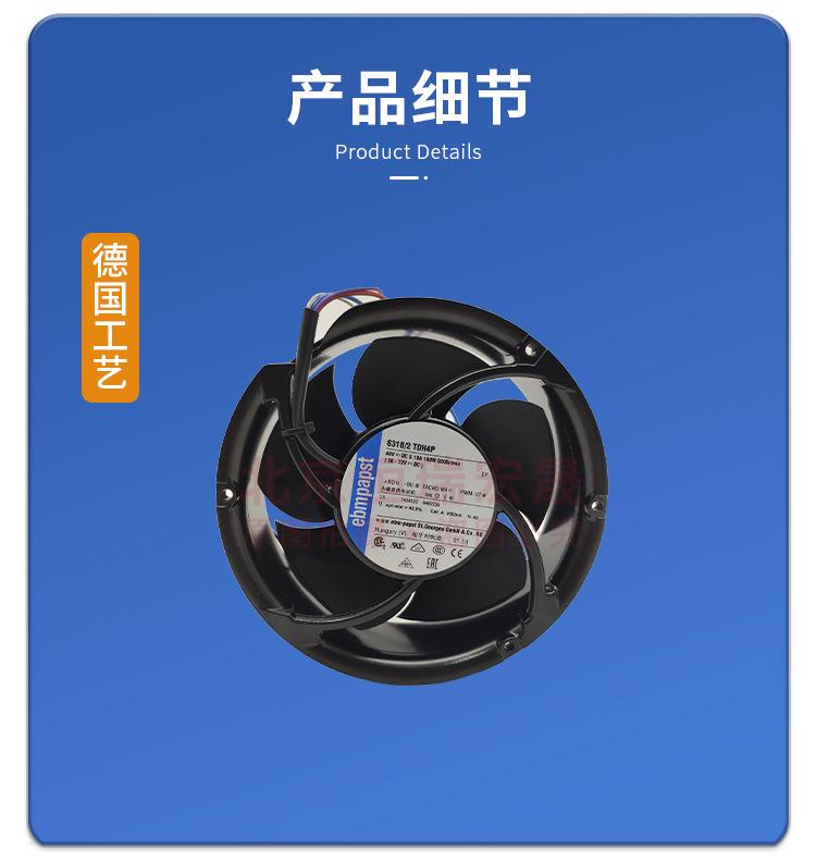 Ventilador de refrigeración de gran volumen de aire ebmpapst serie ACS880 6318/2TDH4P, 48 V, 3,1 A, 150 W