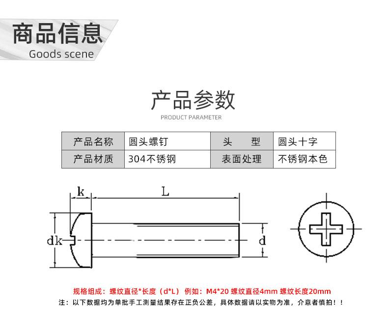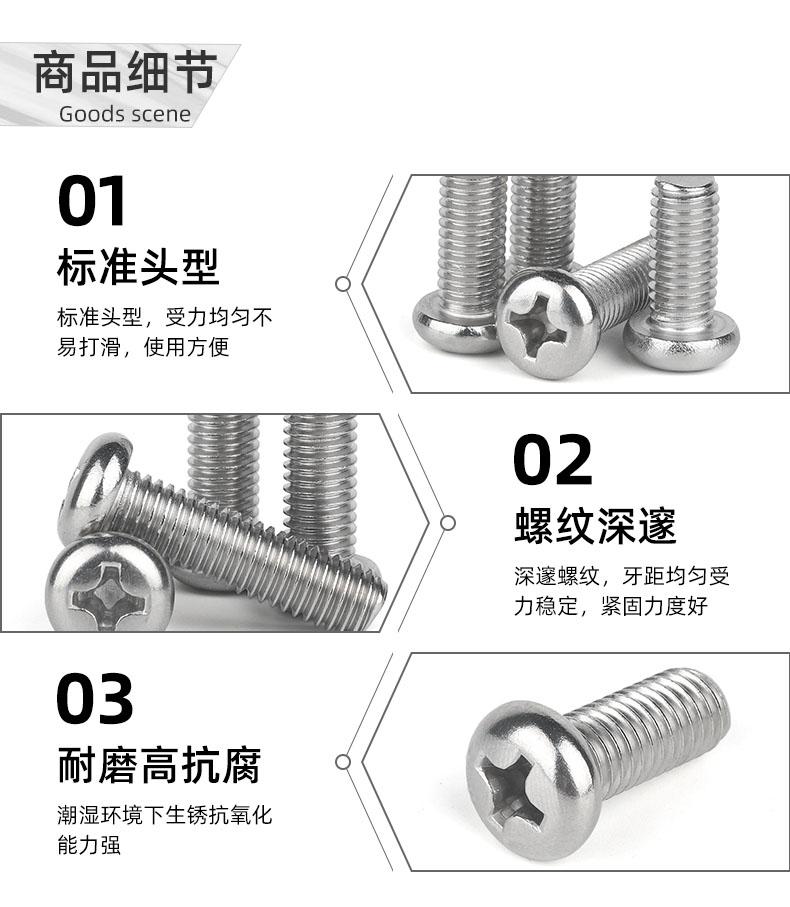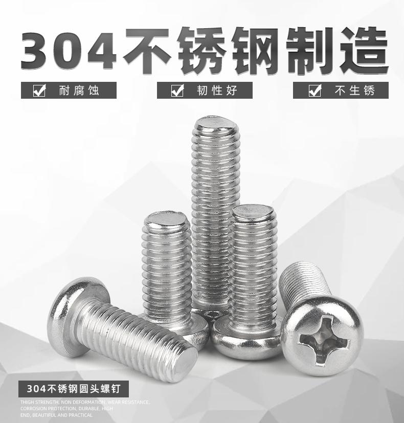 Tornillo de rosca de cabeza redonda con ranura en cruz de acero inoxidable 304, tornillo de rosca de cabeza plana PA M5/M6/M6.3/M8, fábrica al por mayor