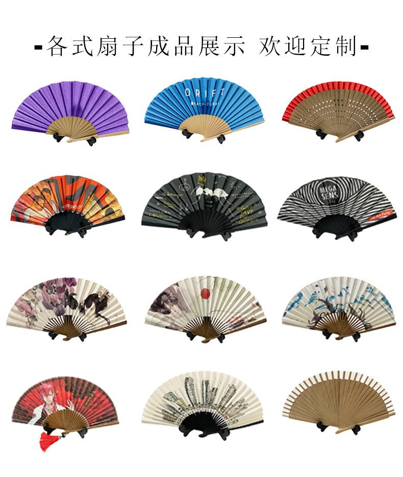 Abanico plegable de tela de plástico luminoso abanico de tela regalo artesanal abanico publicitario abanico de baile abanico de tela de kung fu fábrica mayoreo
