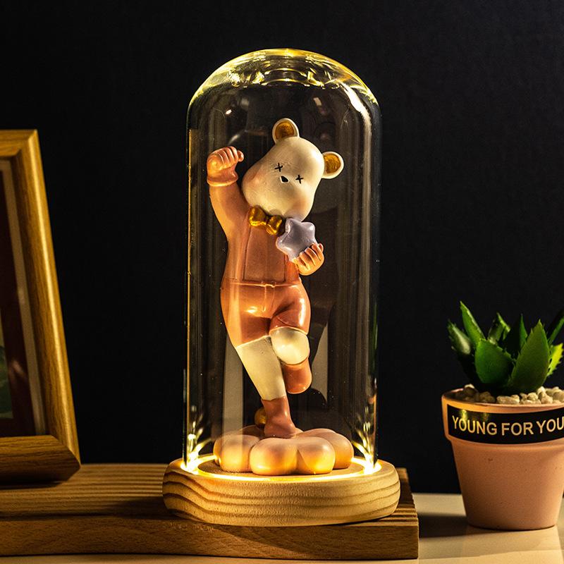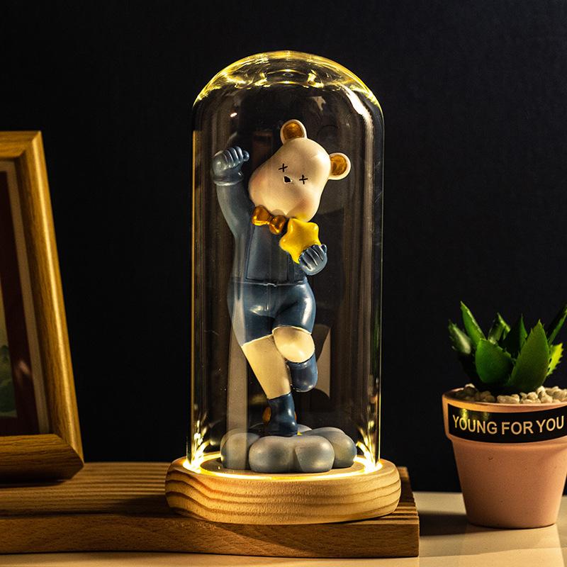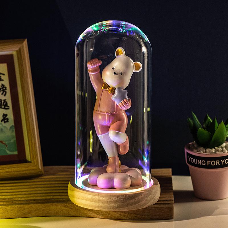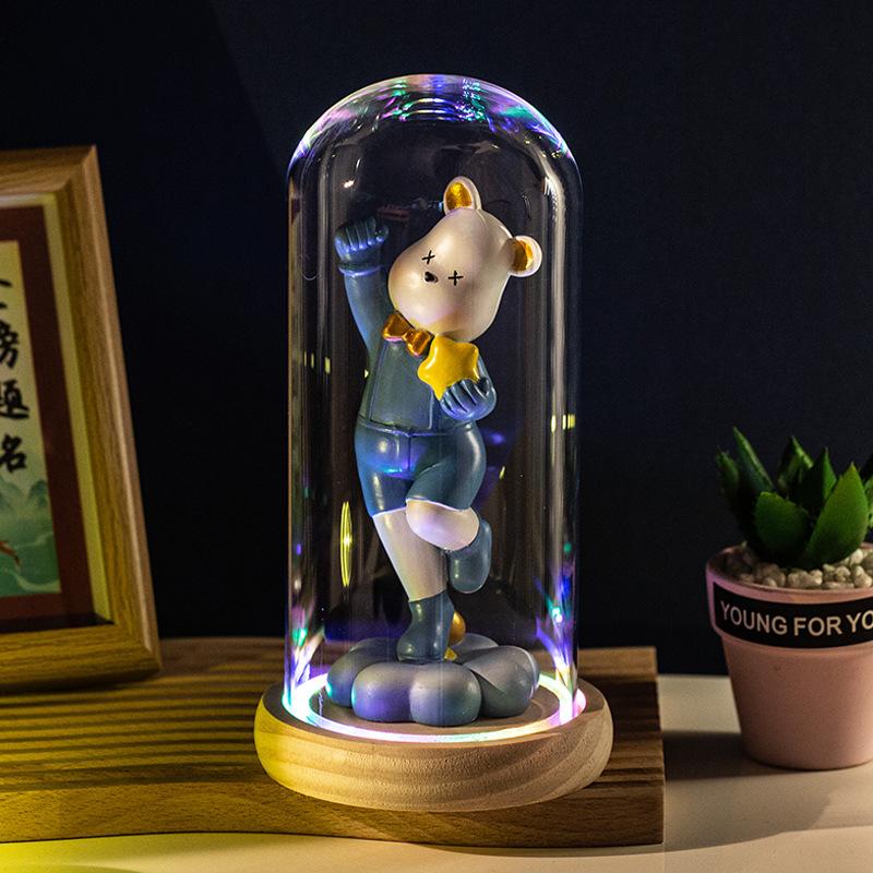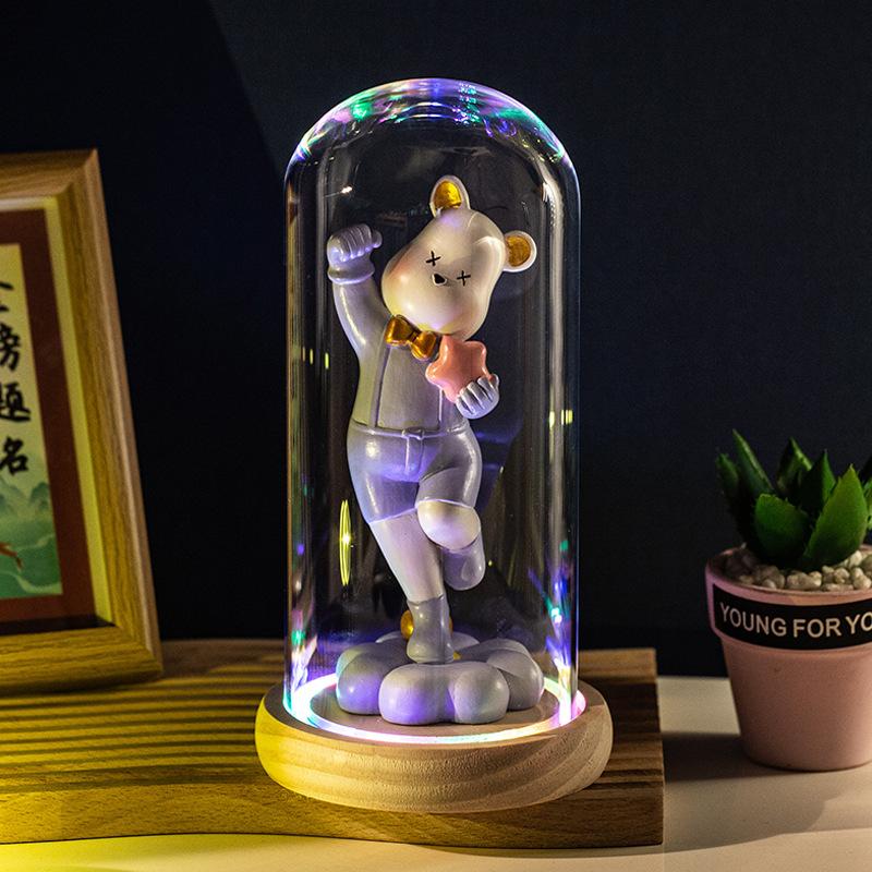 Día de la Madre Resina Oso Violento Luz Nocturna Luminosa Oficina Sala de Estar Dormitorio Adorno Creativo Mejor Amiga Regalo de Cumpleaños para Mujeres