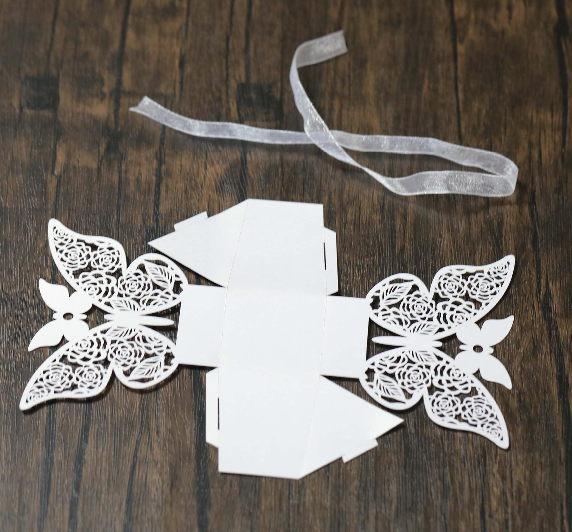 Podemos realizar la personalización de varias flores de papel huecas para regalos de bodas/bordes de pasteles/cajas de dulces de boda huecas con láser/todo tipo de cubiertas de cajas de papel huecas con láser para embalaje/tarjetas de felicitación huecas/invitaciones huecas/tarjetas de asiento y otros diversos accesorios artesanales relacionados con el láser.