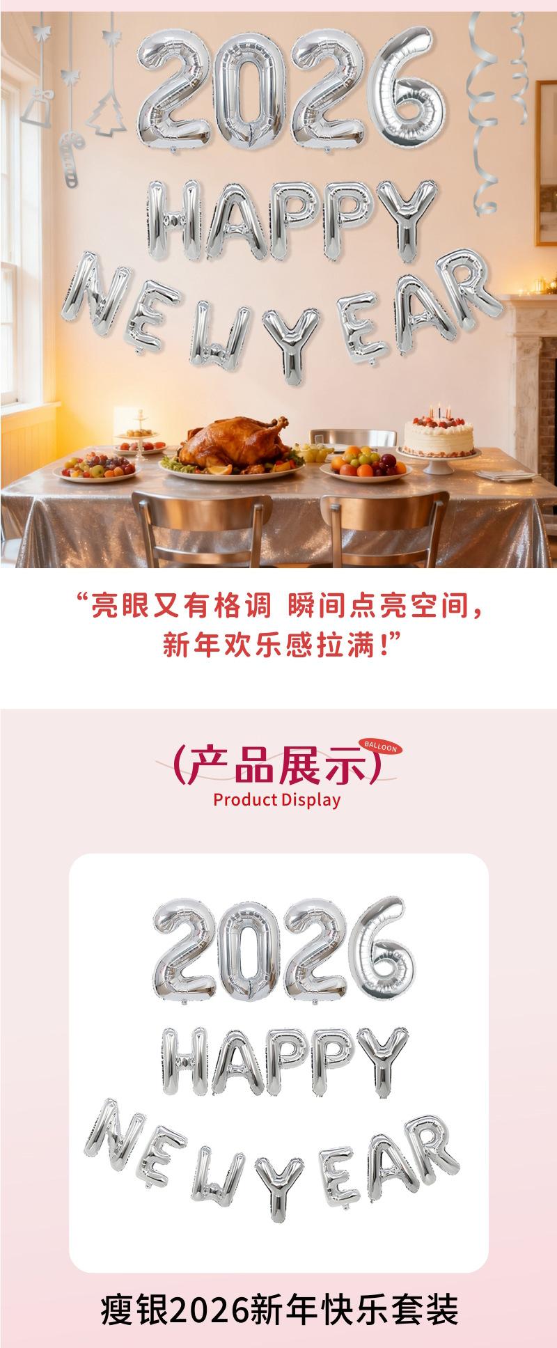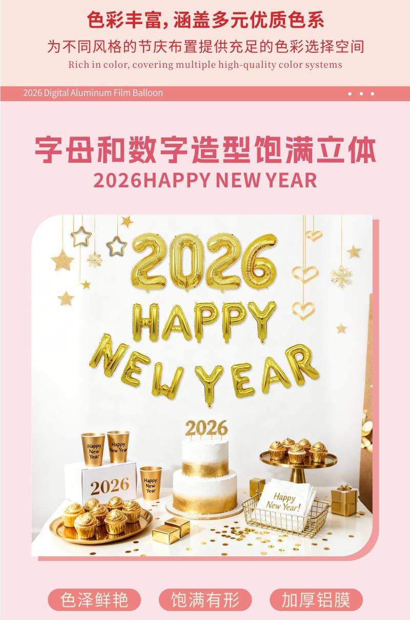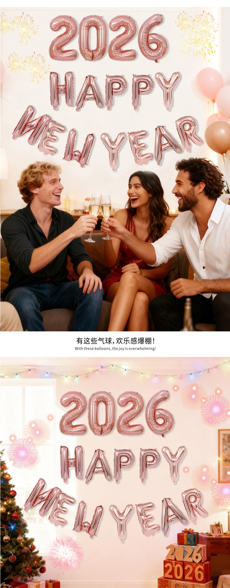 Globos Nuevos Transfronterizos 2026 Decoración para Fiesta de Nochevieja Set Feliz Año Nuevo Globos de Papel de Aluminio Feliz Año Nuevo