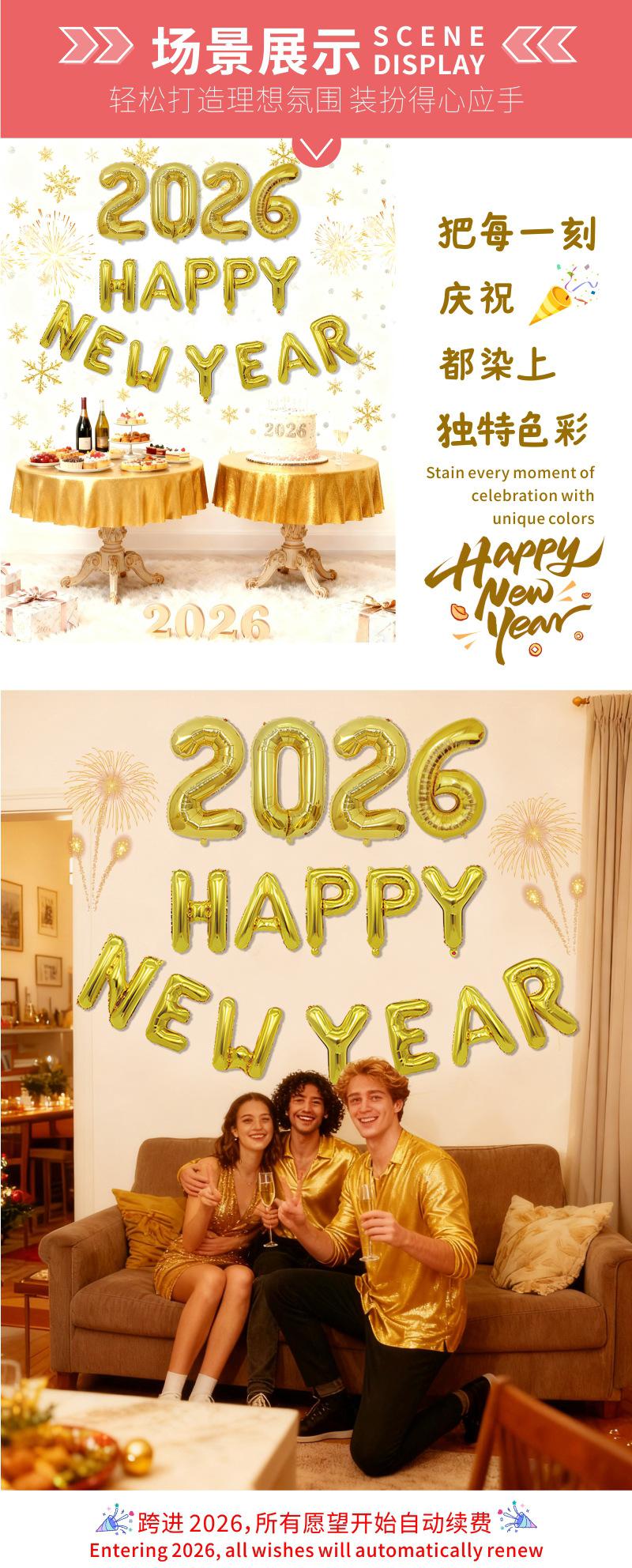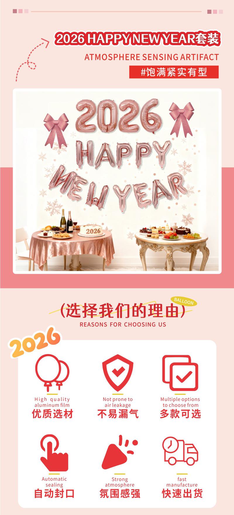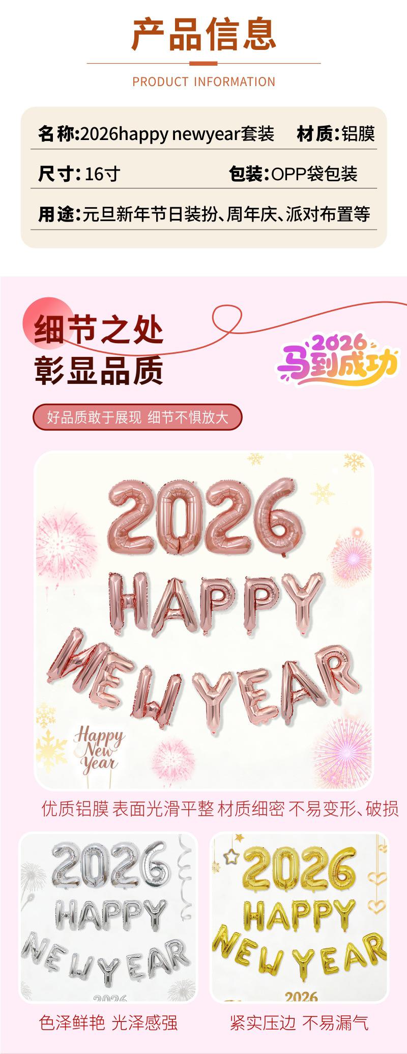 Globos Nuevos Transfronterizos 2026 Decoración para Fiesta de Nochevieja Set Feliz Año Nuevo Globos de Papel de Aluminio Feliz Año Nuevo