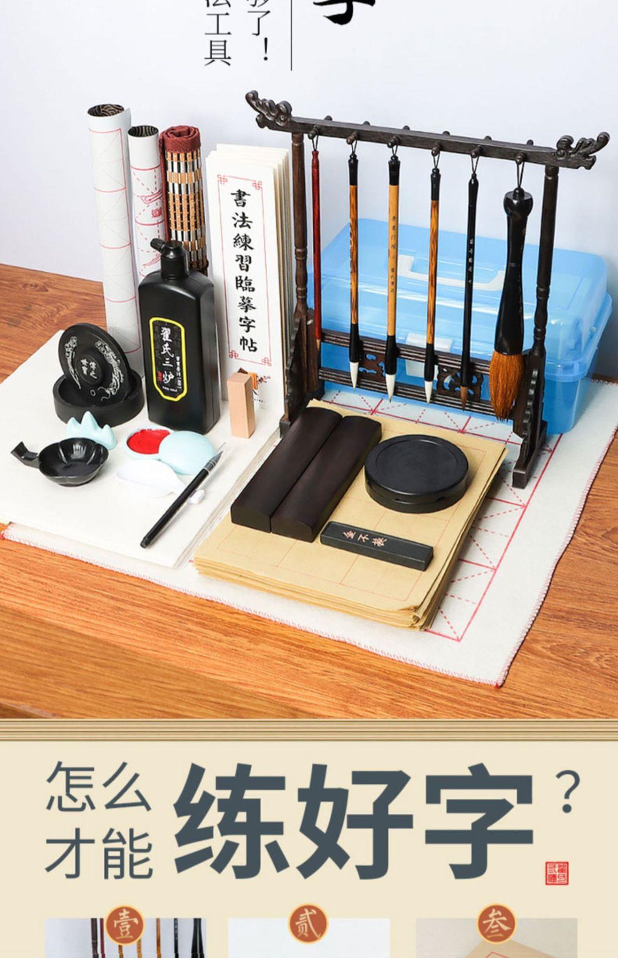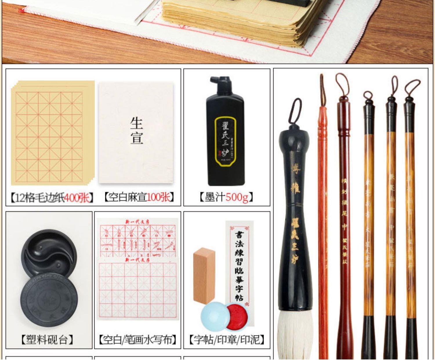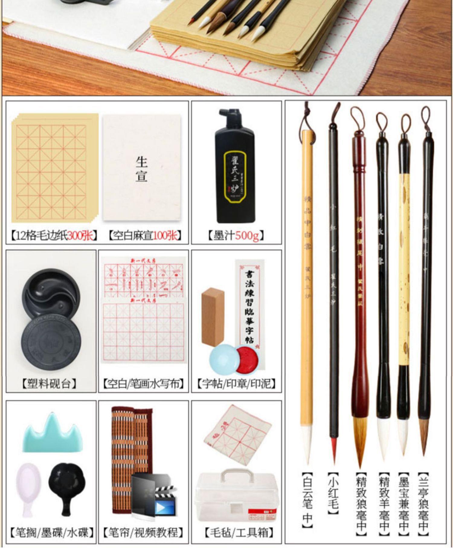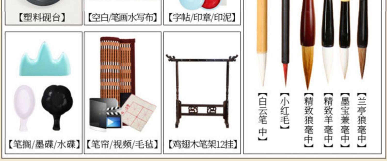 Juego de pinceles Caligrafía para principiantes Cuatro tesoros de la práctica de la escritura Introducción a los caracteres del pincel Tinta Papel Piedra de tinta Práctica especial