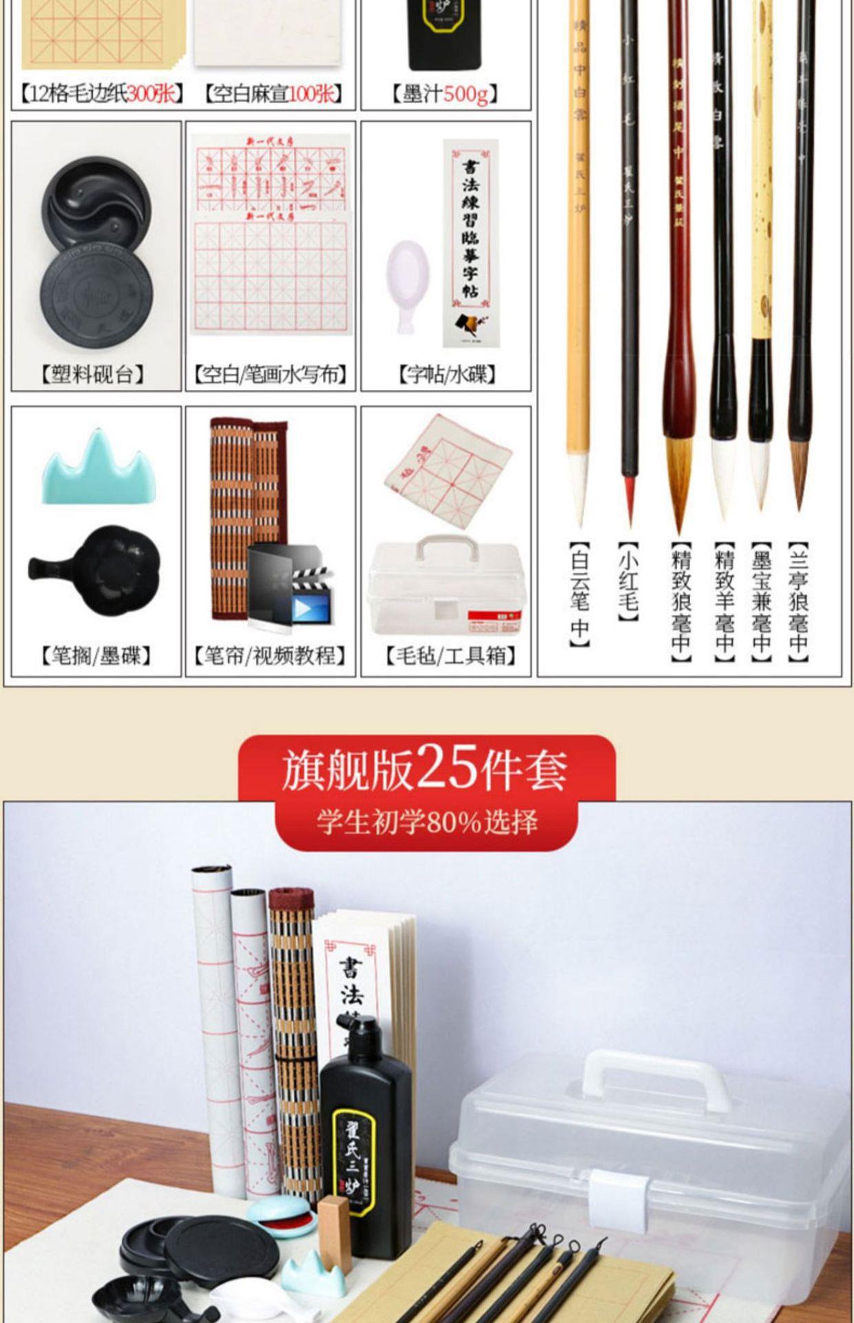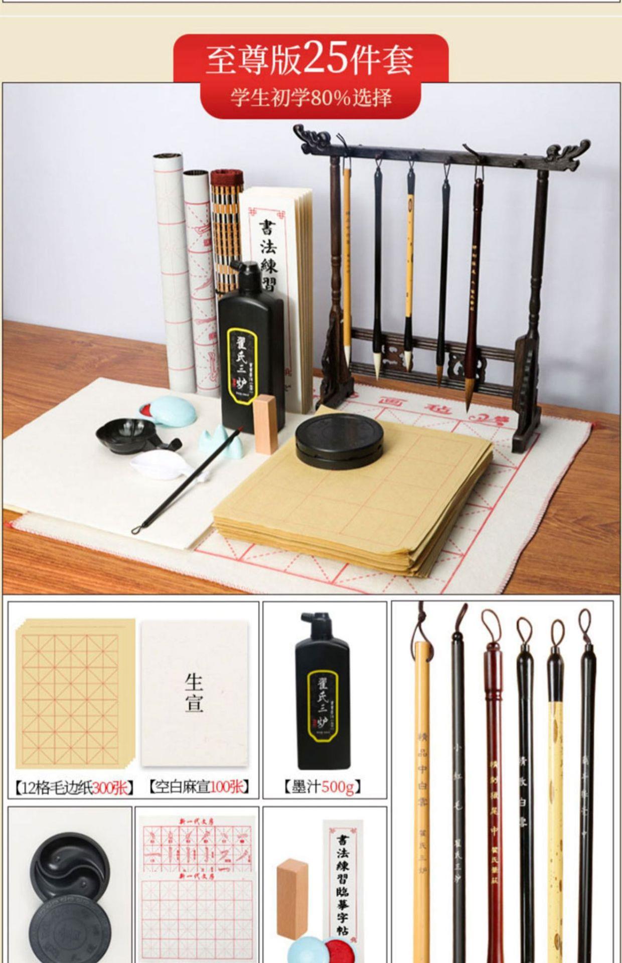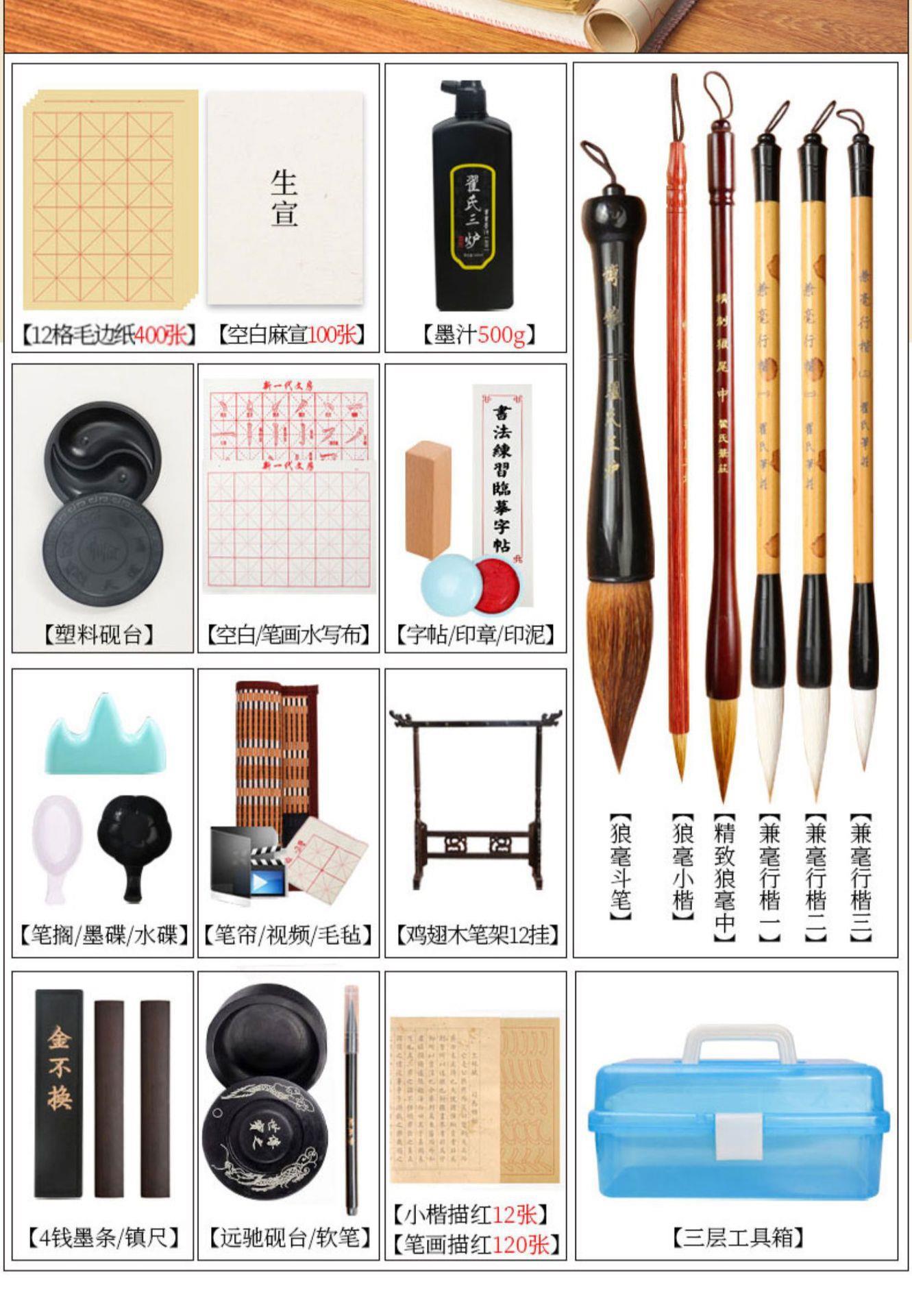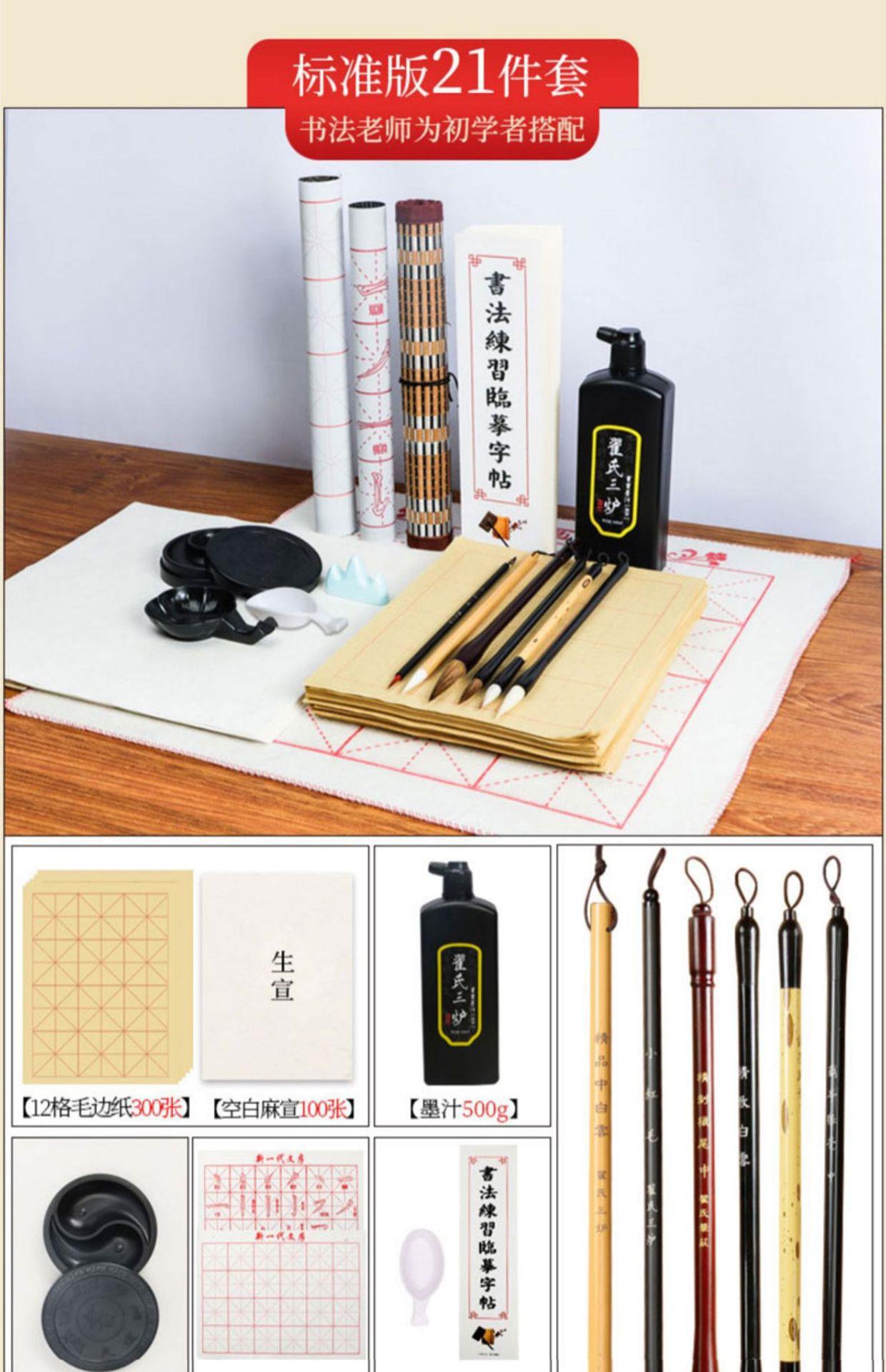 Juego de pinceles Caligrafía para principiantes Cuatro tesoros de la práctica de la escritura Introducción a los caracteres del pincel Tinta Papel Piedra de tinta Práctica especial