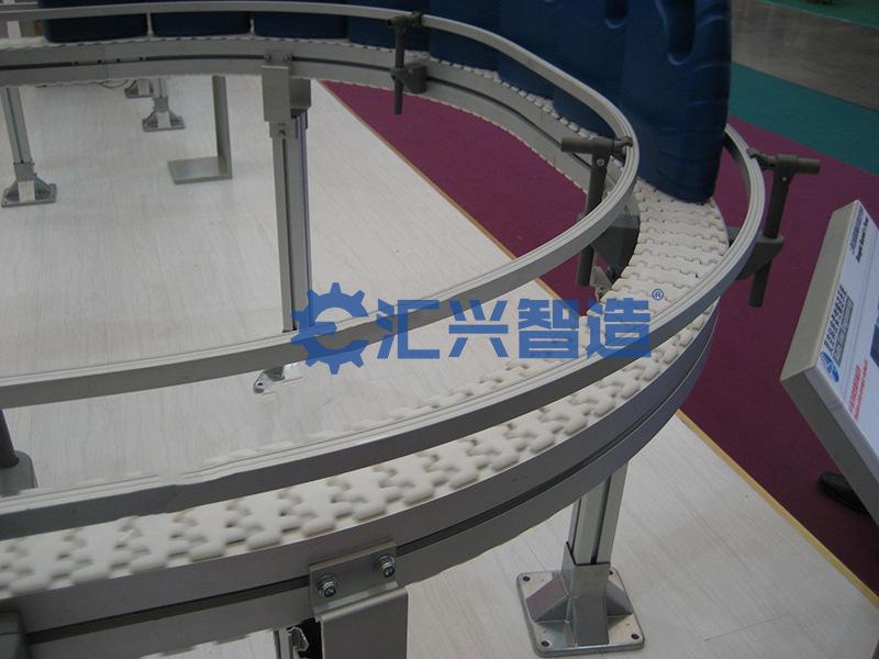 La línea transportadora de quilla utiliza una cadena flexible de alta resistencia como soporte, que puede utilizarse para transporte recto y curvo. Ofrece buena adaptabilidad y economía, un transporte suave, un radio de giro pequeño, bajo nivel de ruido y desgaste, y es fácil de limpiar y mantener. El ancho es de 43,5, 53, 53,2, 55 y 57,2 mm; el paso es de 50, 63,5 y 82,5 mm; el radio de giro es de 150 mm y el radio de giro inverso es de 50 mm.