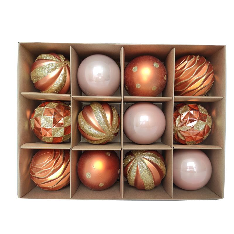 Adornos navideños populares de Amazon, caja de regalo de bolas navideñas de 8 cm/12 piezas, ideal para árbol de Navidad.