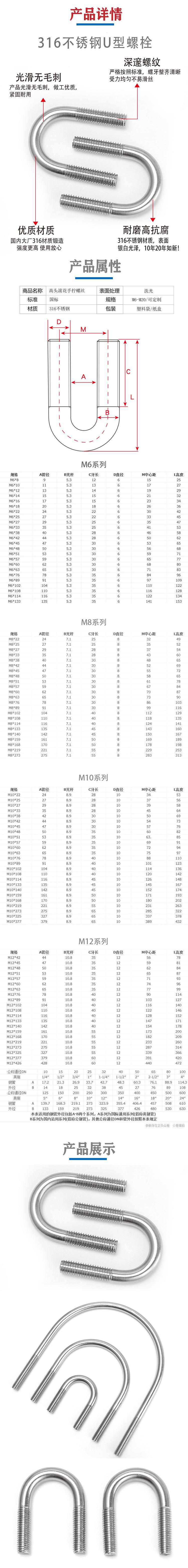 M6M8M10M 12 316 Tornillo en forma de U de acero inoxidable Tarjeta en forma de U Perno en forma de U Abrazadera de tubería en forma de U M6 Abrazadera de tubería DN50