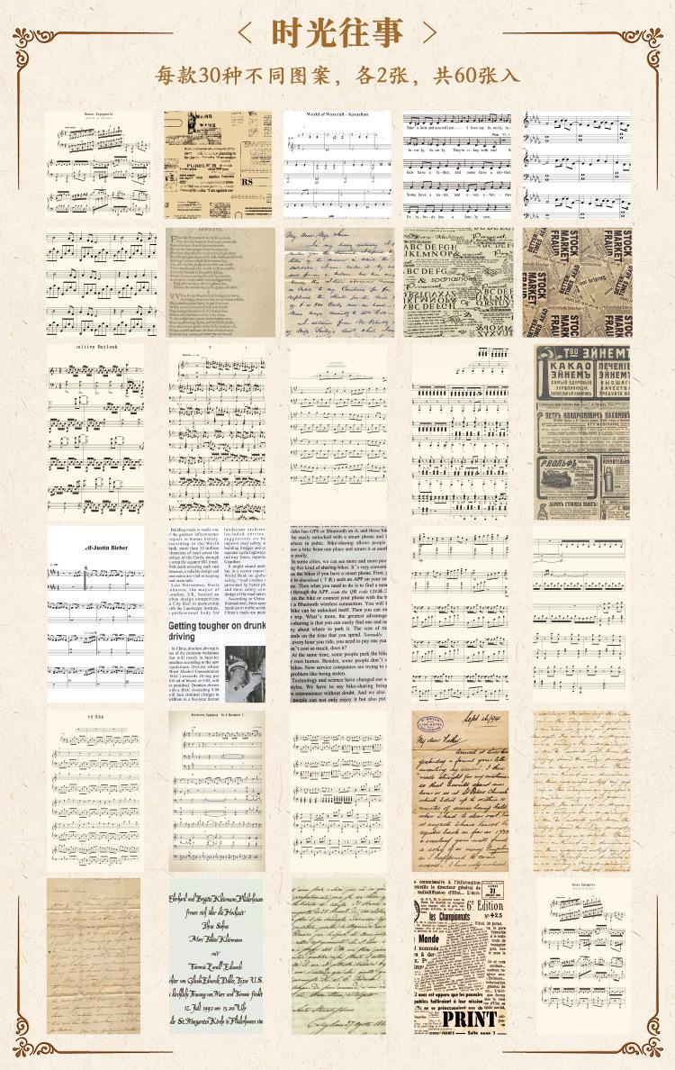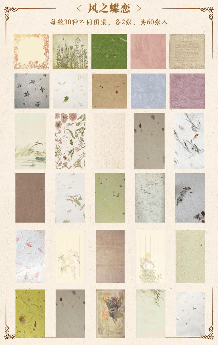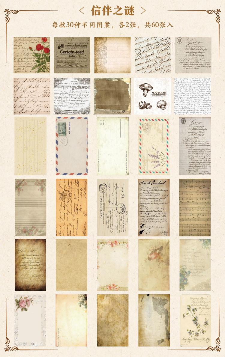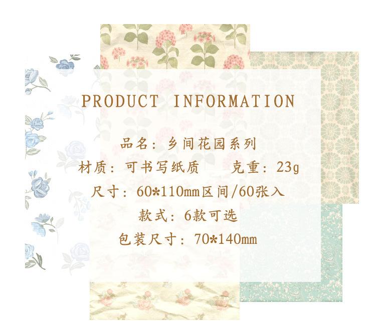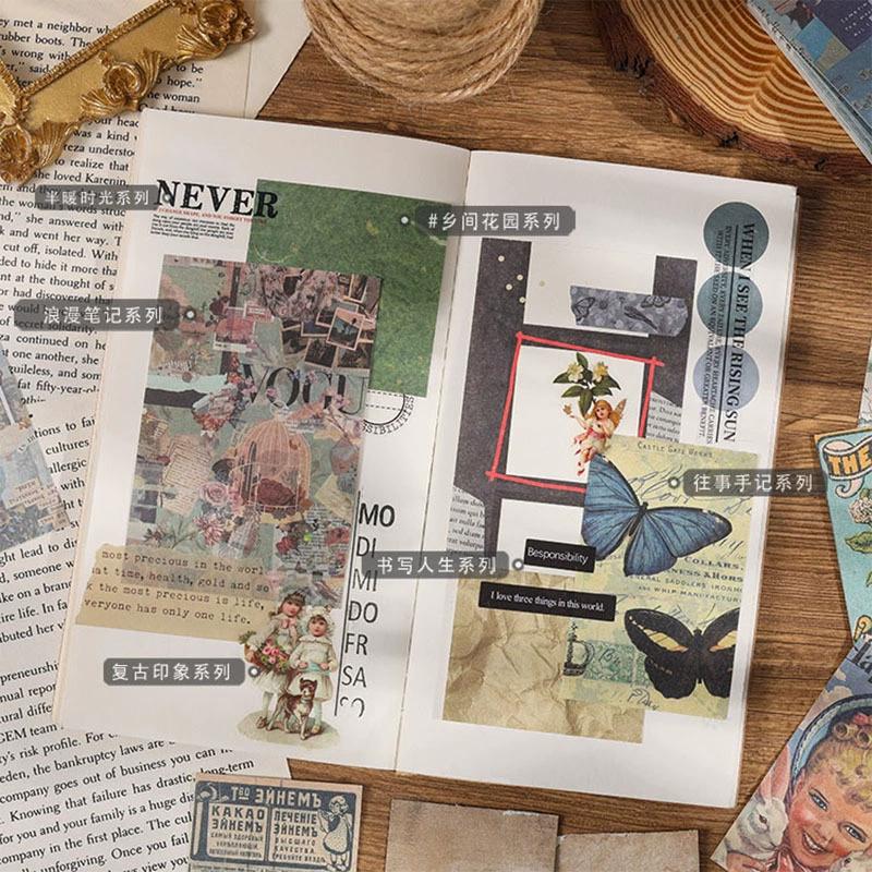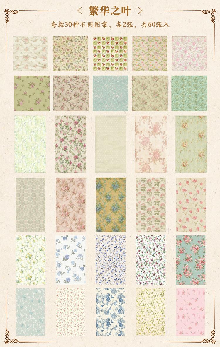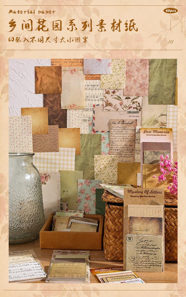 2024 Nuevo Jardín Campestre Inglés Pegatinas para Cuaderno 60 Materiales Estilo Retro Americano Papel de Fondo Libro de Material para Notas