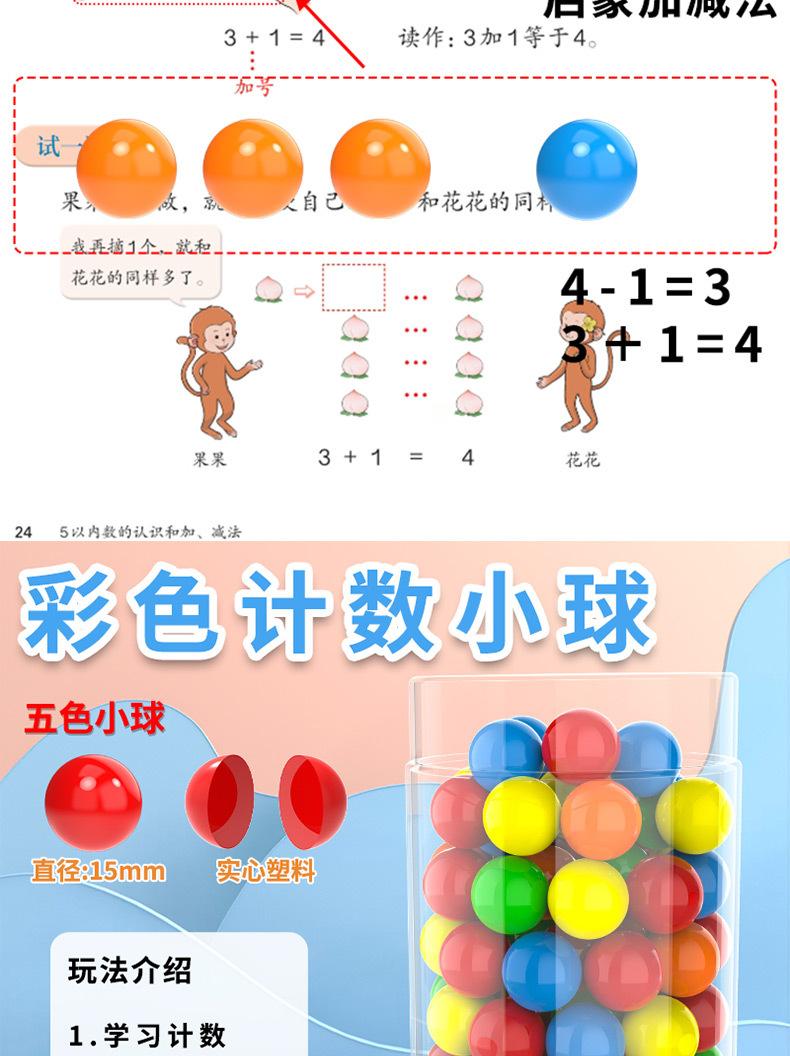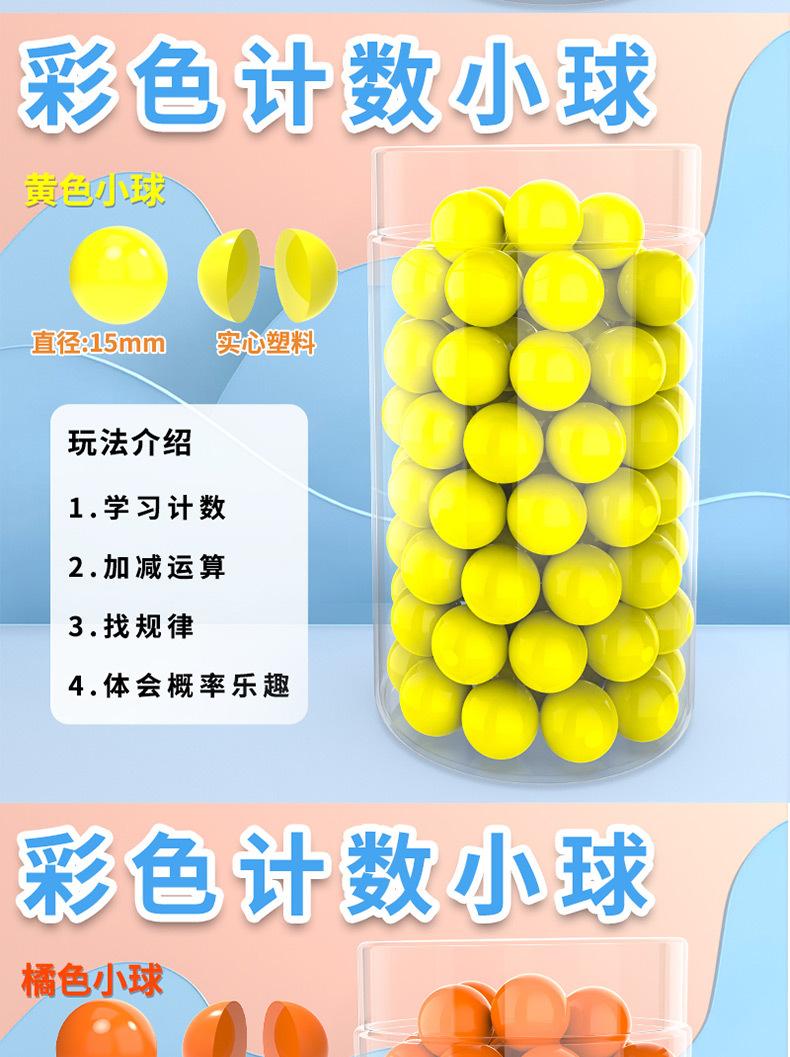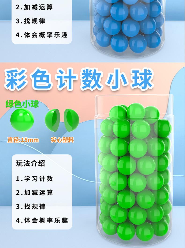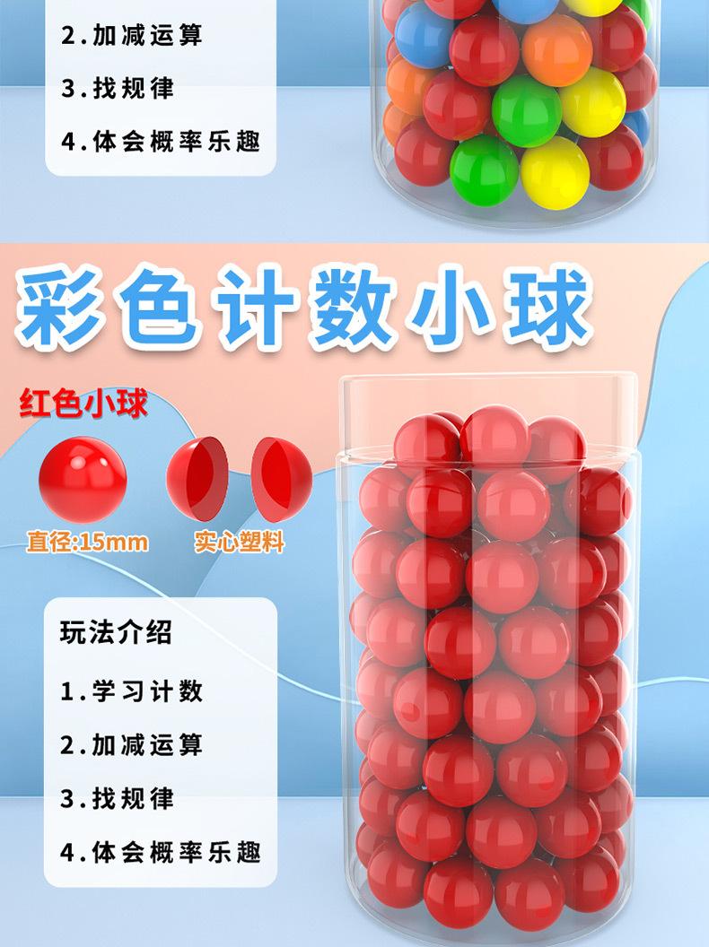 Bola de plástico de color de 15 mm, bola sólida de plástico, bola de conteo, problema de probabilidad de aprendizaje, material didáctico de matemáticas de escuela primaria
