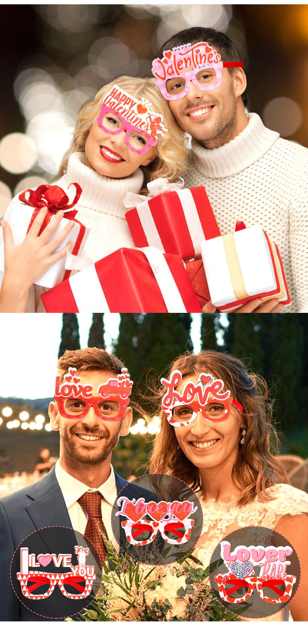 Decoraciones para fiestas de San Valentín 2025 con gafas, marco de gafas de amor, accesorios para fotos y disfraces de fiesta.