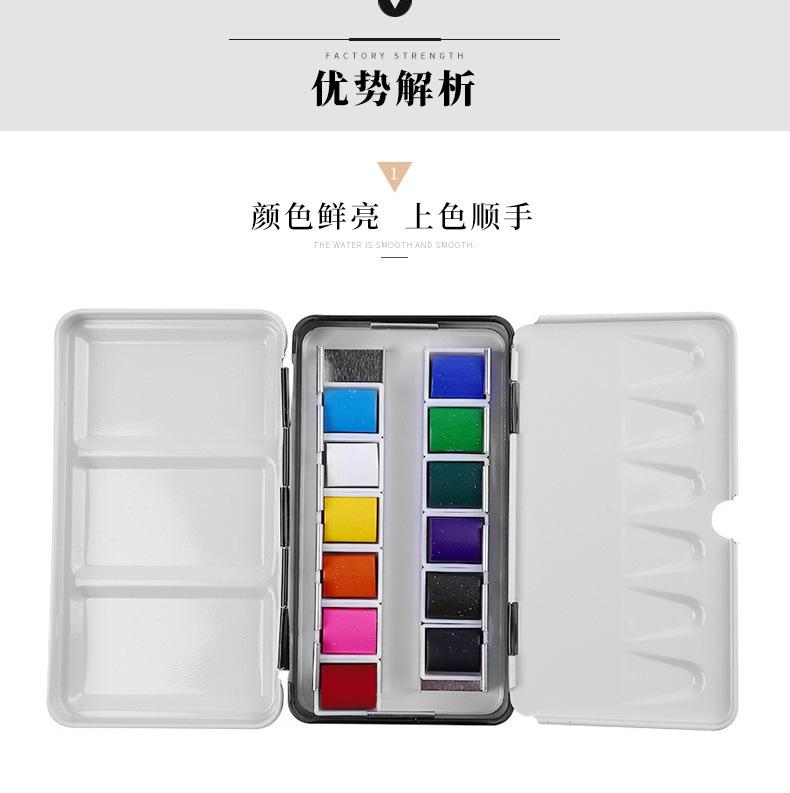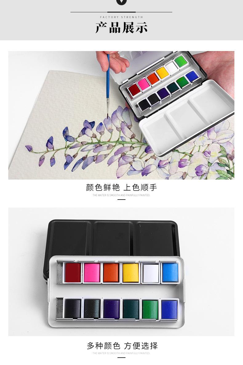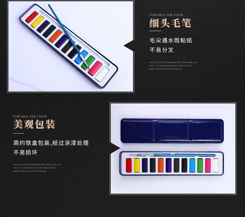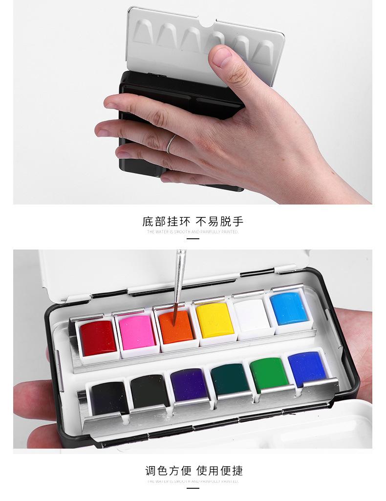 Set de Pintura Acuarela de 12 Colores con Estuche de Hierro Portátil, Caja de Pintura Reemplazable, Paleta, Pinturas Acuarela Sólidas