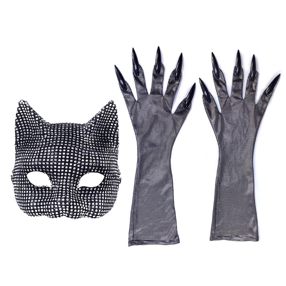 Nuevo traje de máscara de gato para niña con diamantes incrustados para Halloween, guantes largos para disfrazarse y bailar, accesorios para cosplay