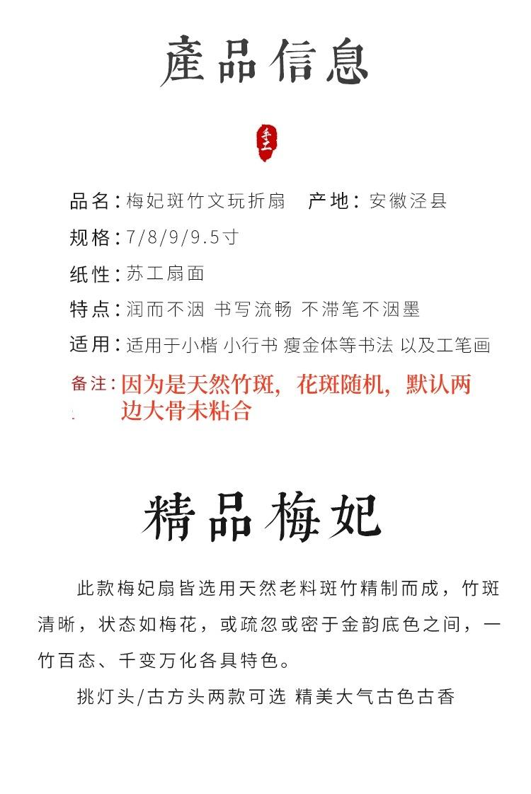 Mei Fei Fan Abanico Plegable de Bambú para Hombre con Hueso Abanico de Papel Xuan Abanico de Colección Wen Play Abanico de Caligrafía Bambú Xiangfei 7-10 Pulgadas