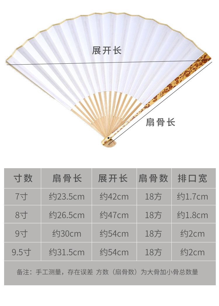 7-inch 18-square straight square with gold rice paper fan surface, large bone not glued, fan box and fan hoop ...