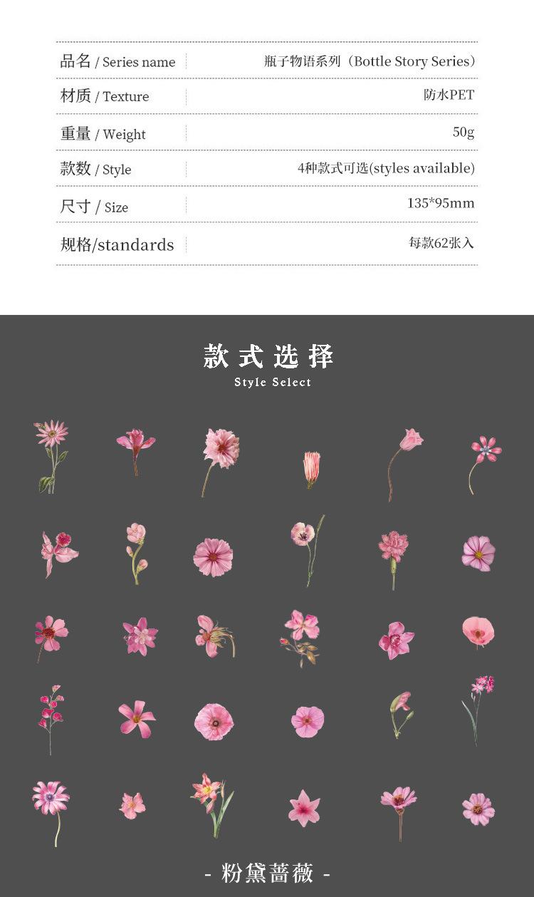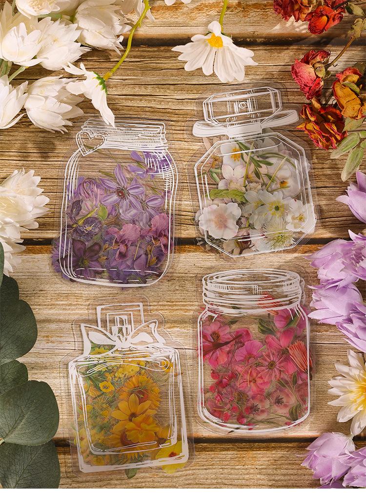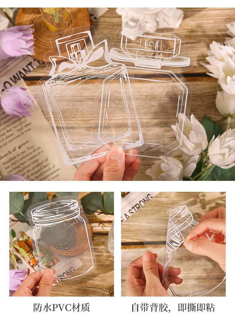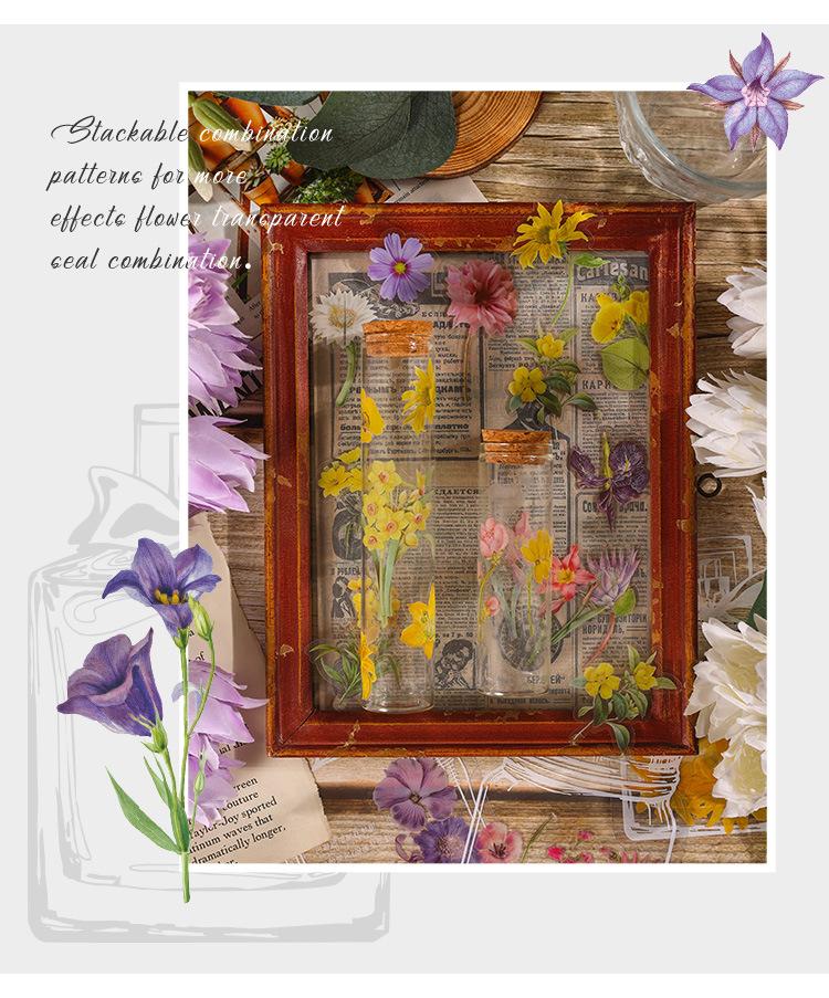 Serie Bottle Story, pegatina transparente para cuenta de mano de PET con forma de flor y planta, material para cuenta de mano, decoración DIY