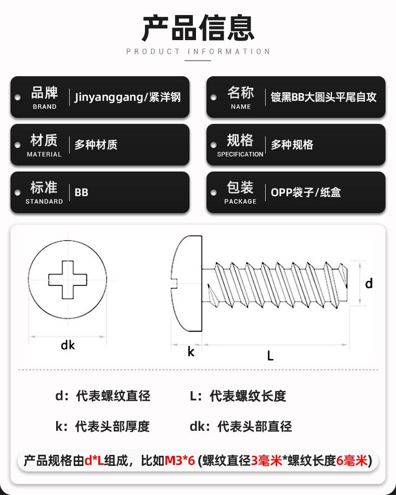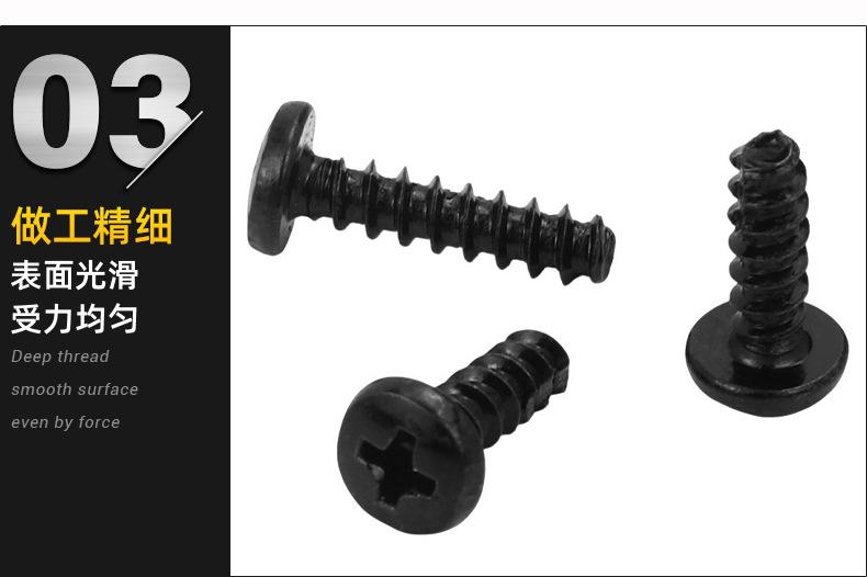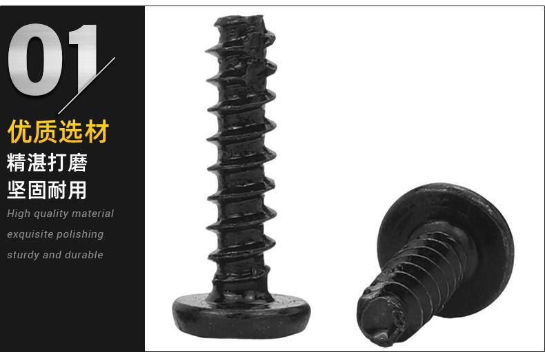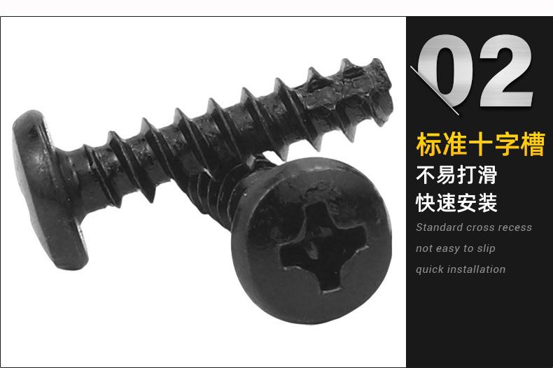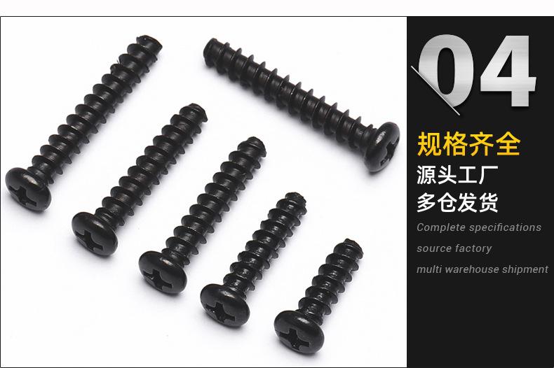 Tornillo de hierro BB con cruz negra, cabeza redonda grande, cola plana, autorroscante, cabeza plana grande, negro, M3/M4