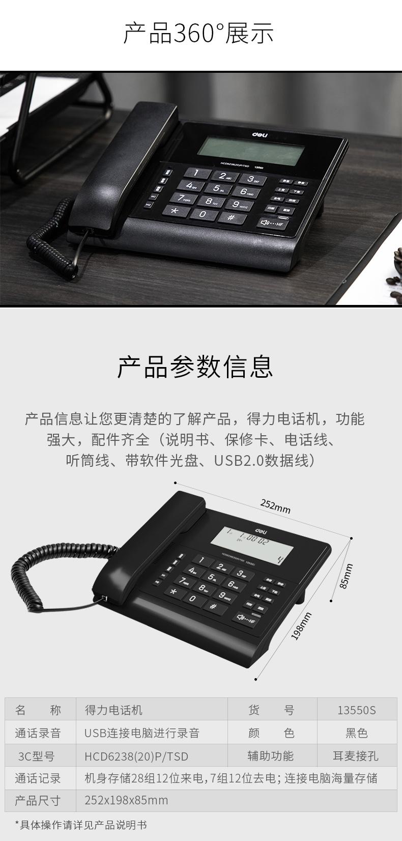 Deli 799 Teléfono de Grabación Digital Teléfono Fijo Alámbrico Teléfono Multifunción para Negocios Oficina Hogar